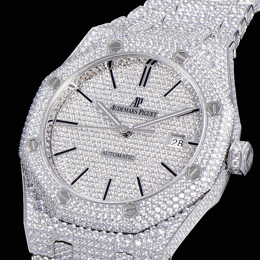 Audemars Piguet Royal Oak Selfwinding Silver 15400 Iced Out Watch