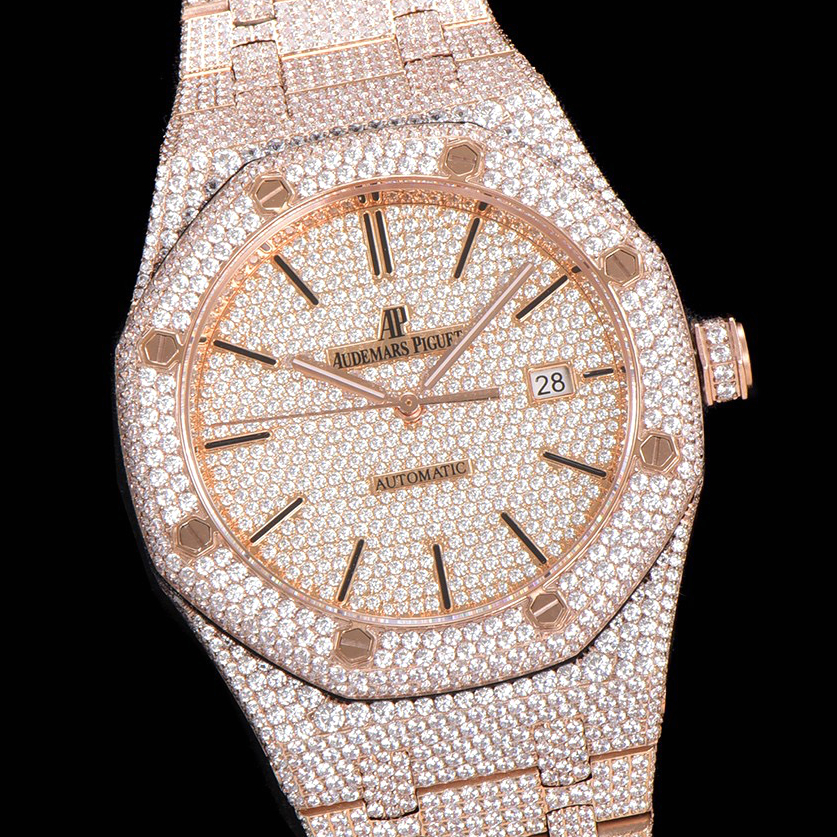Audemars Piguet Royal Oak Selfwinding Rose Gold 15400 Iced Out Watch