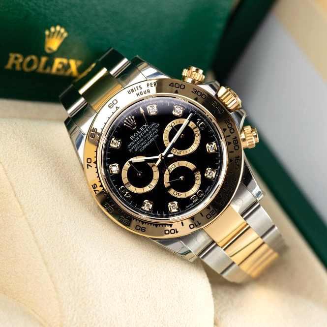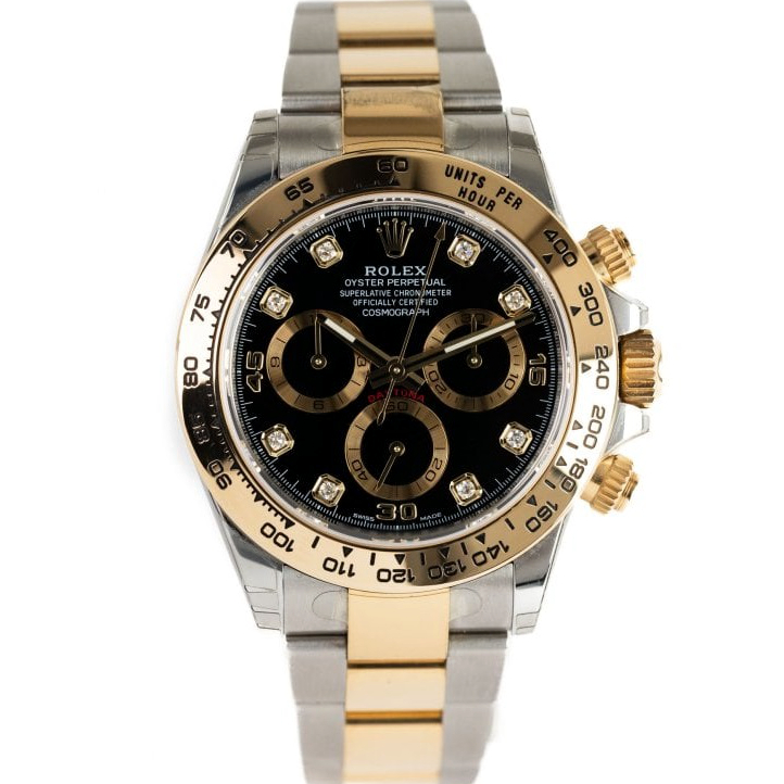 Rolex Daytona Cosmograph 40mm BLACK Two Tone 18K Yellow Gold Steel 116523