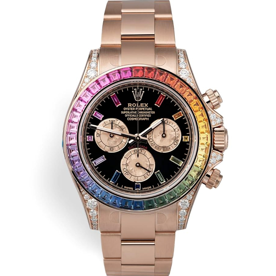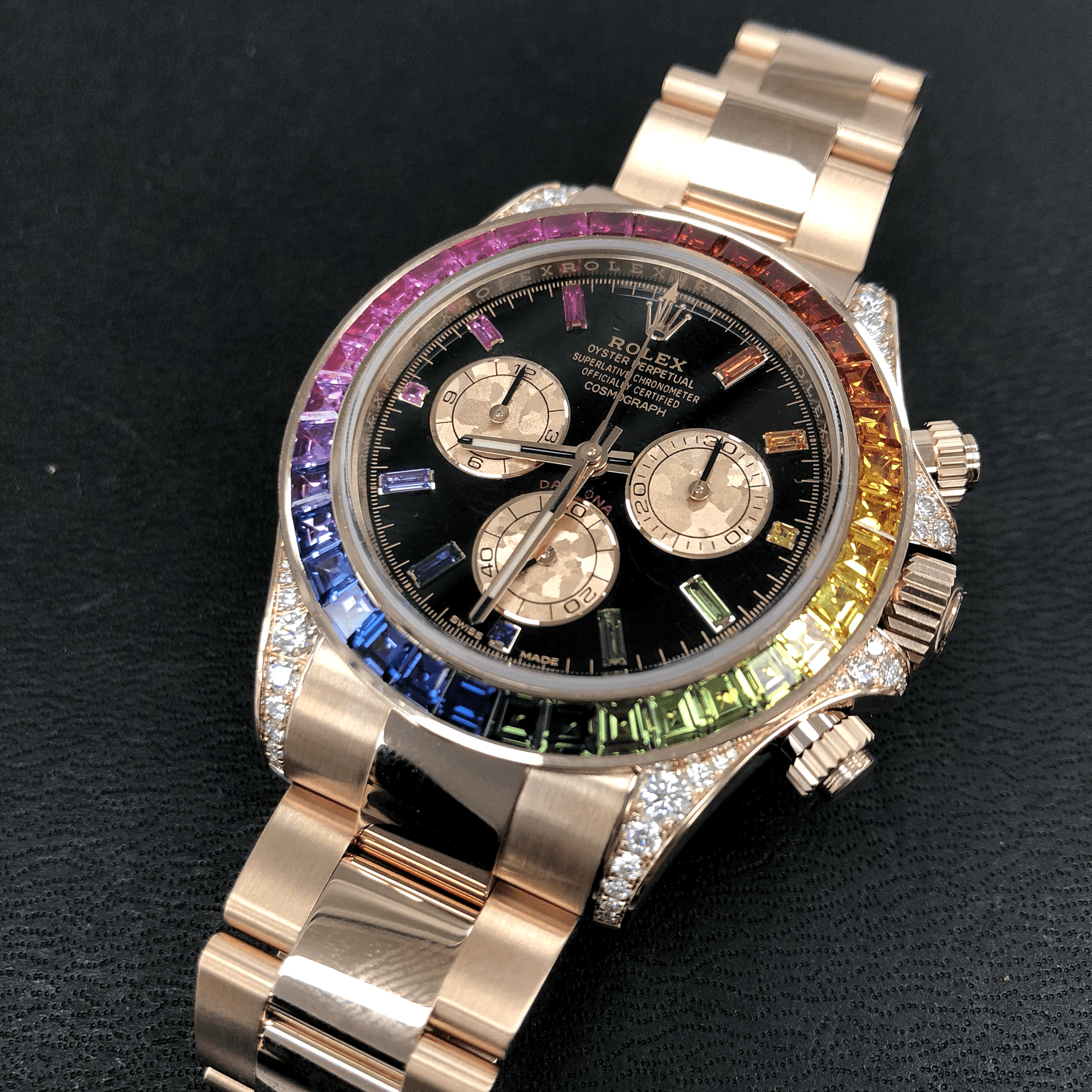 Rolex Daytona 116520 Custom Rainbow Diamonds and Sapphires Stainless Steel MINT