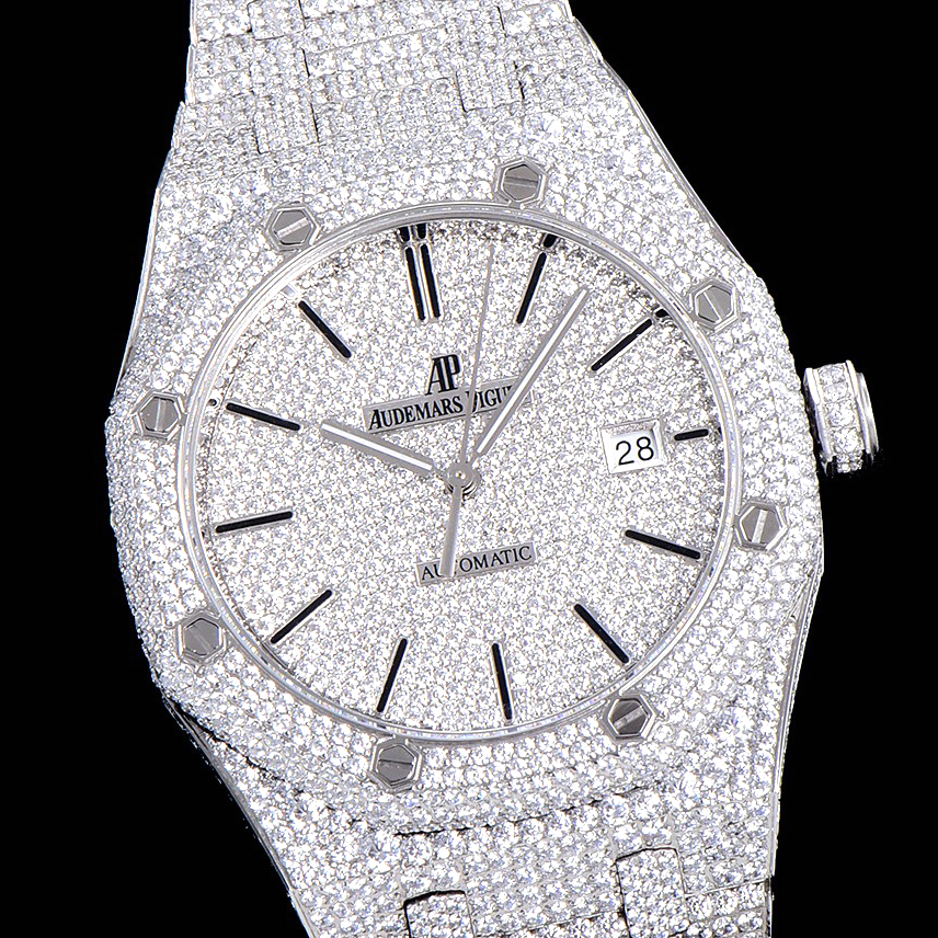 Audemars Piguet Royal Oak Selfwinding Silver 15400 Iced Out Watch
