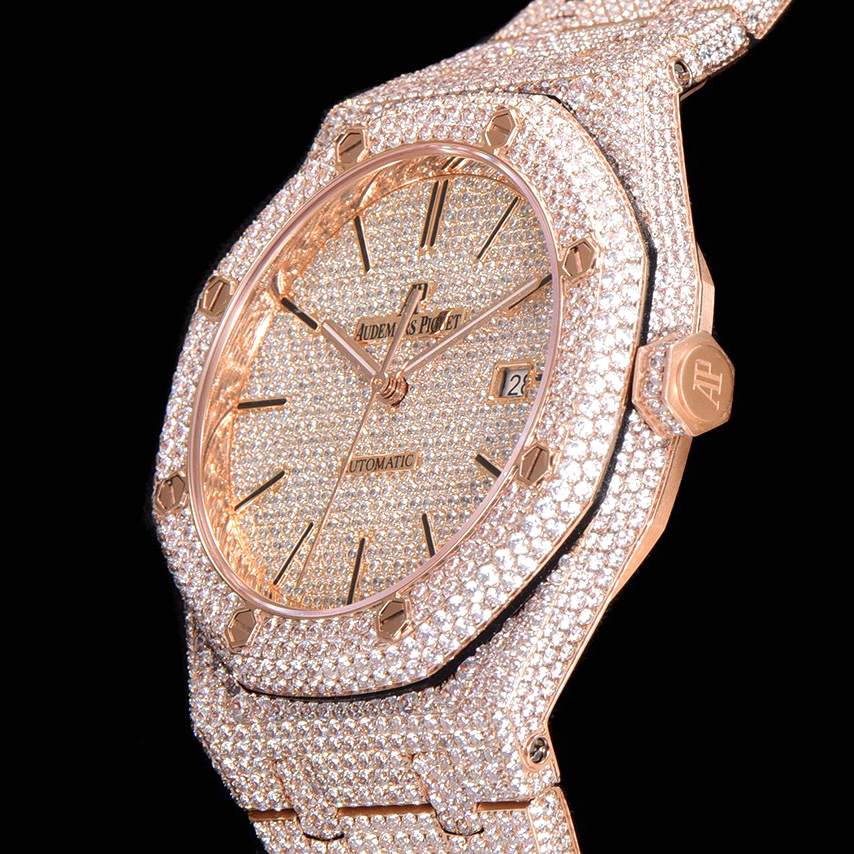 Audemars Piguet Royal Oak Selfwinding Rose Gold 15400 Iced Out Watch