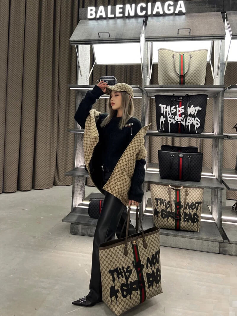 Hacker Graffiti Large Tote Bag in beige and brown coated canvas with aged gold hardware is from The Hacker Project.