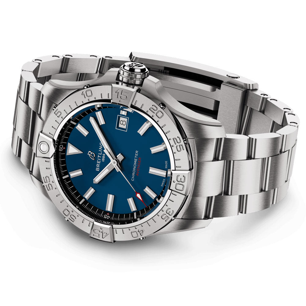 Built to withstand even the harshest cockpit environments. the Breitling Avenger 42mm Blue Dial Automatic Gents Watch A17328101C1A1 merges performance and stylish modern aviation design. Crafted out of stainless steel. ceramic. and titanium. this collection makes a powerful statement and the dial colors even mimic military uniform shades. Models are easily customizable with a choice between a leather strap with a buckle or a three-row stainless-steel bracelet with a folding clasp. Both versions have a water-resistant depth of 300 meters and boast corrosion-resistant construction and an easy-grip functionality.