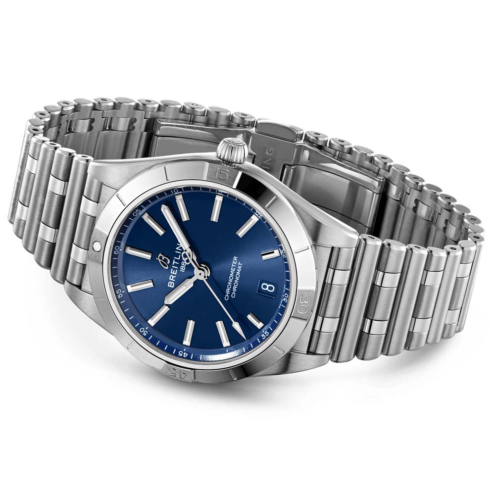 Featuring a modern-retro aesthetic. the Chronomat Automatic 36 offers a bevy of metal case choices. from stainless steel to bicolour to 18ct red gold. plus diamond-set bezels. indices. and dials for a hint of sparkle. The COSC-certified Breitling Calibre 10 powers the watch. which is rounded out with the famed “Rouleaux�?bracelet and butterfly clasp. A great way to bring a touch of elegance to any outfit.