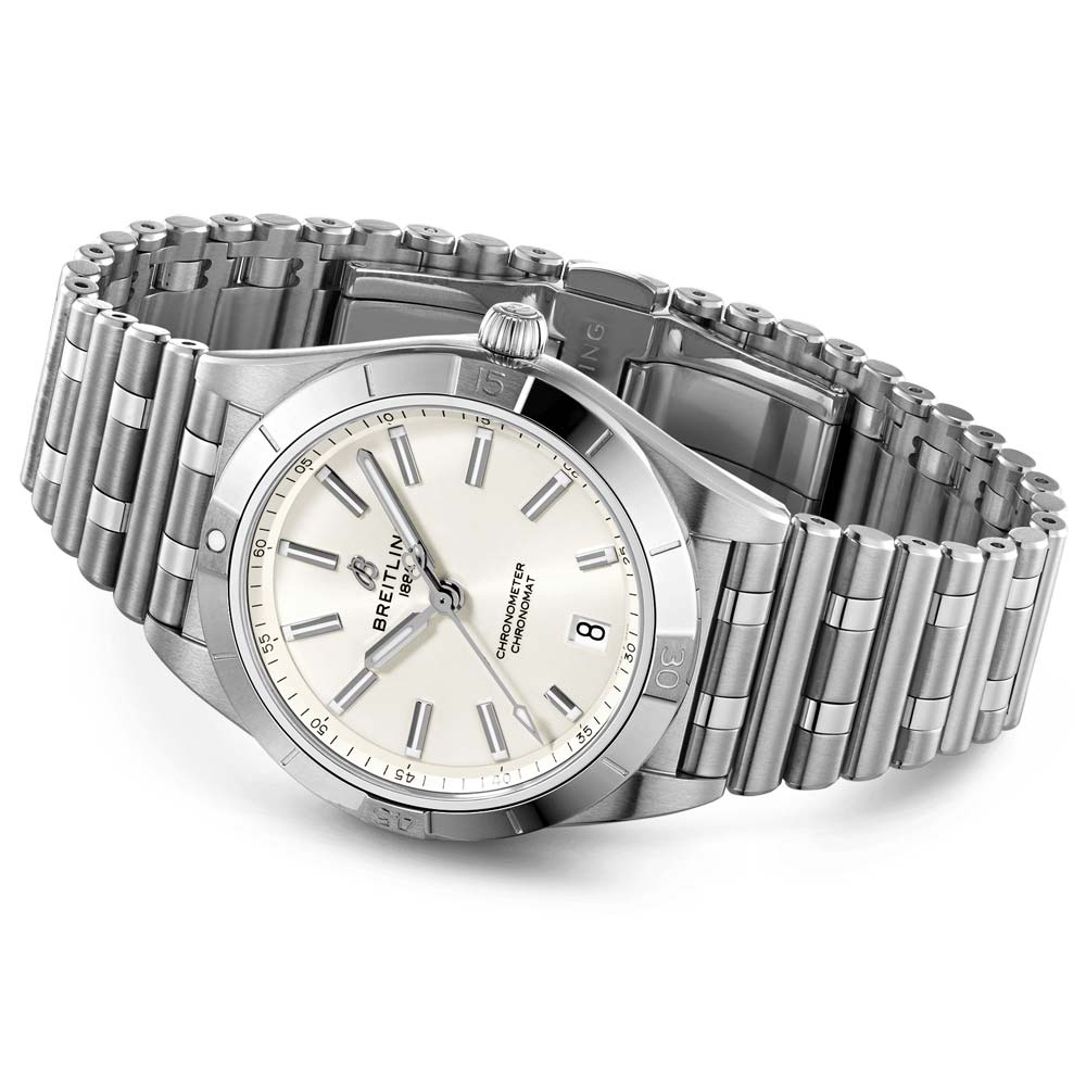 Featuring sophisticated modern-retro design. the Chronomat Automatic 36 is suitable to any occasion. Crafted with stainless steel. bicolour. and 18ct red gold. and with a range of diamond-set bezels. indices. and colourful dials. this watch is sure to make a statement. Further. the Chronomat Automatic 36 is equipped with Breitling's iconic “Rouleaux�?bracelet and butterfly clasp and powered by the COSC-certified Breitling Calibre 10.