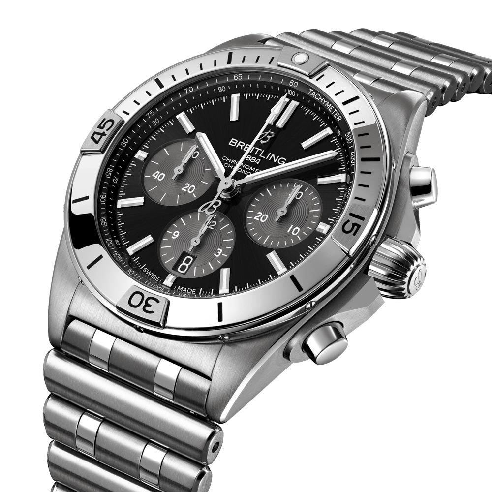 The Breitling Chronomat B01 42mm Black Dial Automatic Chronograph Gents Watch AB01341B1B1A1 is a versatile timepiece designed for all your pursuits. With its impressive proportions and mechanical chronograph movement. this watch holds a significant place in Breitling's history. first introduced in 1984. Inspired by the Frecce Tricolori chronograph. developed in collaboration with the Italian aerial squadron. this watch celebrates the brand's centenary and marks the return of the mechanical chronograph to its well-deserved place at Breitling. Available in various materials. including stainless steel and 18k red gold. the Chronomat boasts a 42mm case and the iconic bezel with four rider tabs. It comes in a variety of dial colors. such as black. blue. silver. and copper. and is paired with the signature "Rouleaux" bracelet. This timepiece is powered by the in-house Breitling Manufacture.