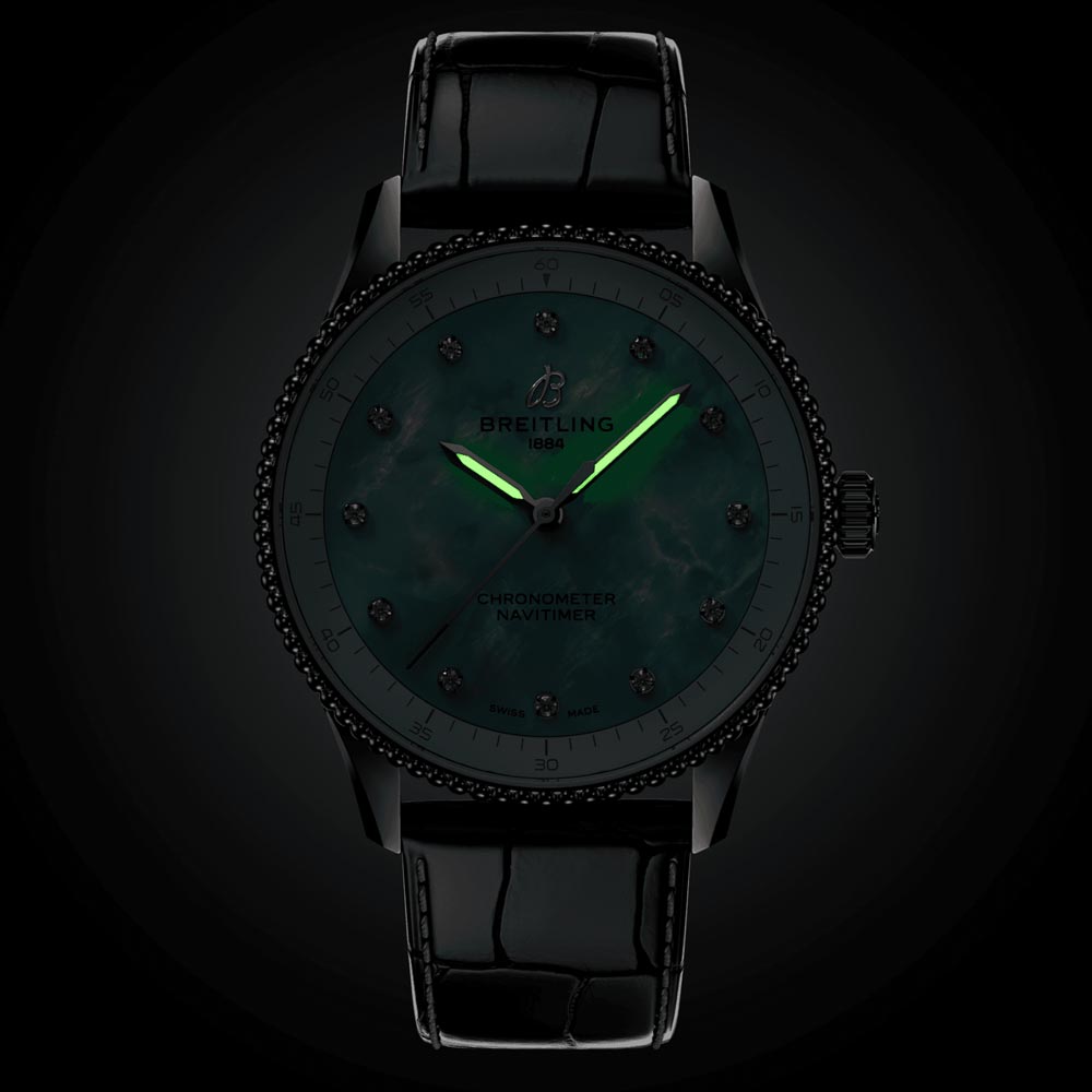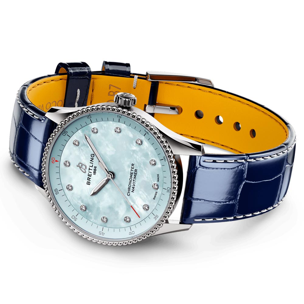 Breitling's renowned Navitimer design is one of the most iconic and beloved timepieces ever crafted. First released in 1952 as an aide for pilots. the watch has become an essential accessory for anyone on a personal journey. The 36 and 32 mm sizes available for both men and women offer a range of options and designs—from the well-known beaded bezel and circular slide rule for the larger model to a sleeker. simplified dial for the smaller version. Plus. subtle touches such as pastel and mother of pearl give the Navitimer a luxurious. heirloom quality sure to lighten any journey.