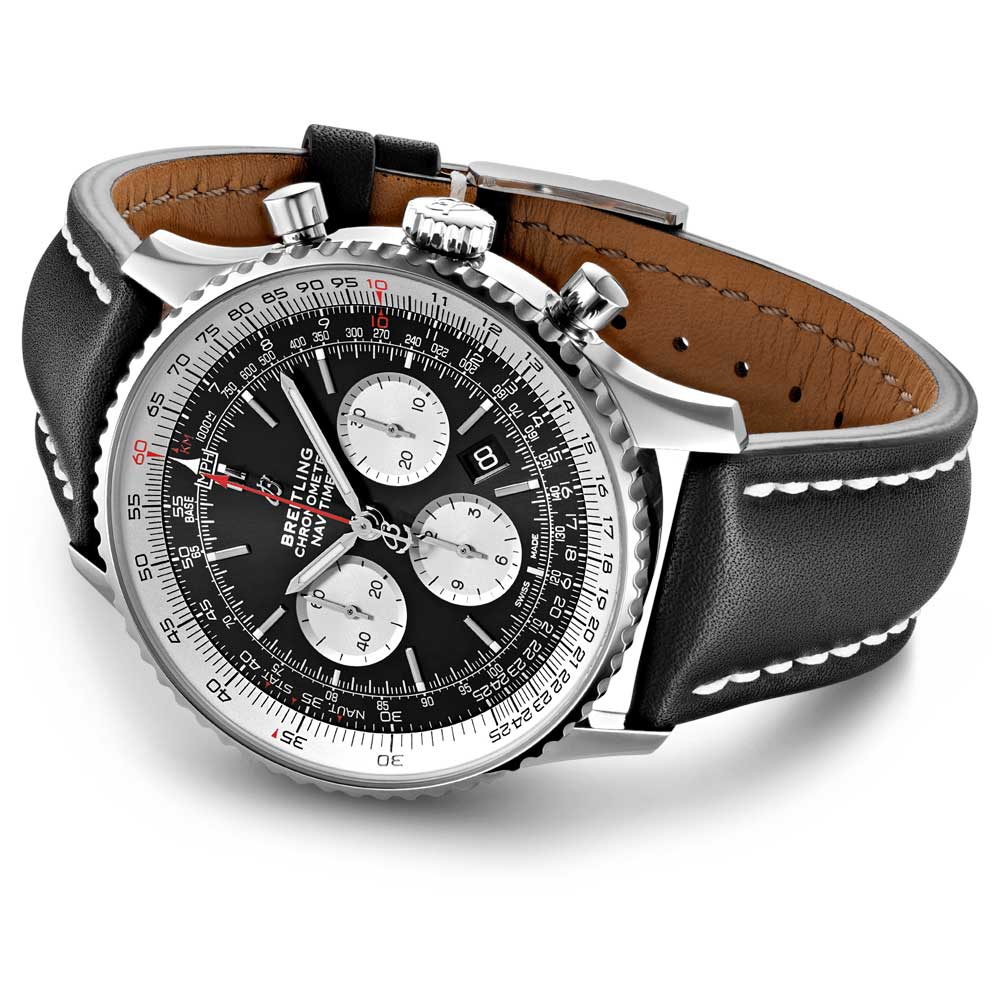 This 46mm Navitimer is a stunning display piece and offers legible readouts with an integrated aviation slide rule. Both aesthetic and technical. the back is fitted with a sapphire crystal which reveals the chronometer-certified Breitling Calibre 01 within - a sturdy COSC-certified chronograph movement. Also available in luxurious red gold. steel. and steel & gold variants. Truly an impressive example of timeless design.