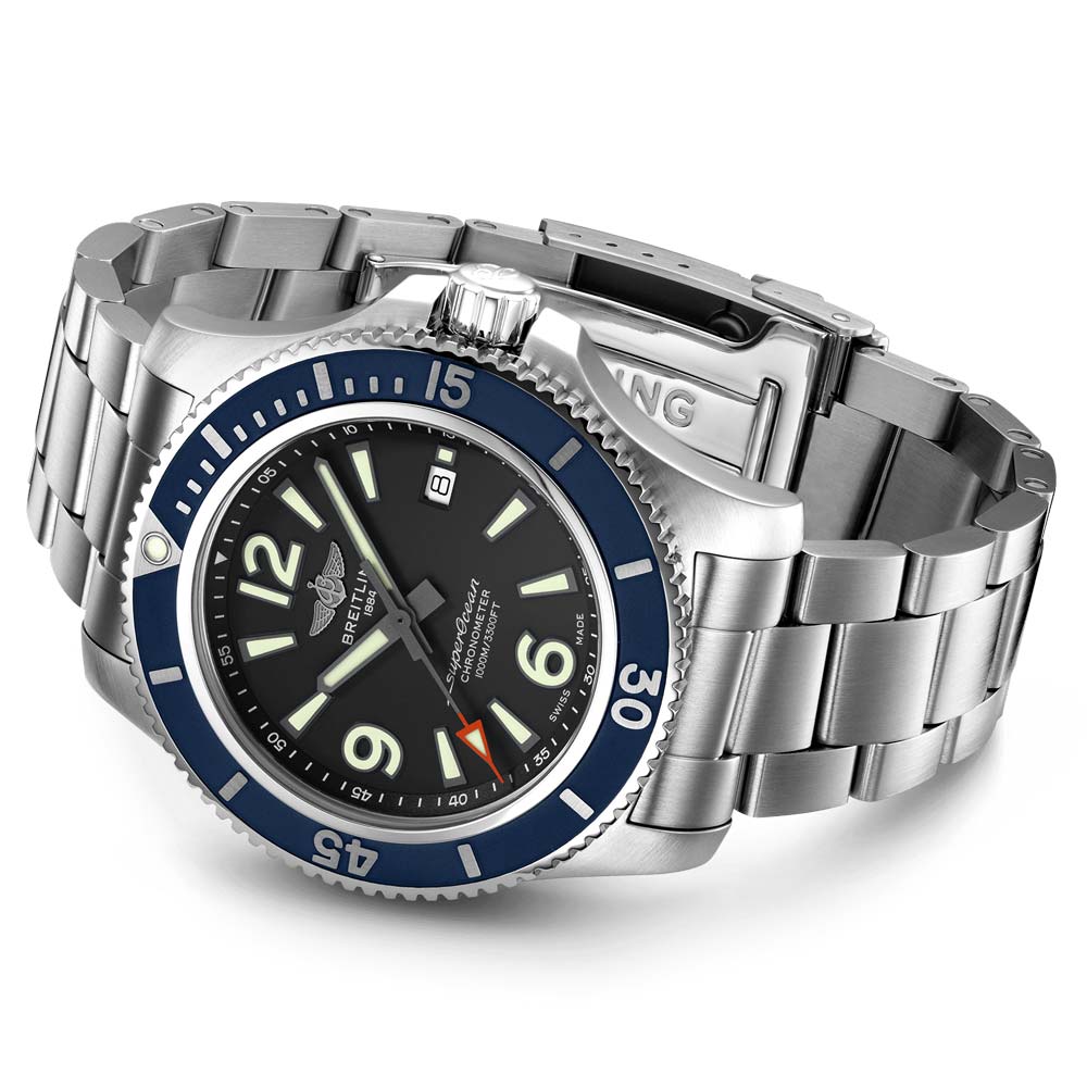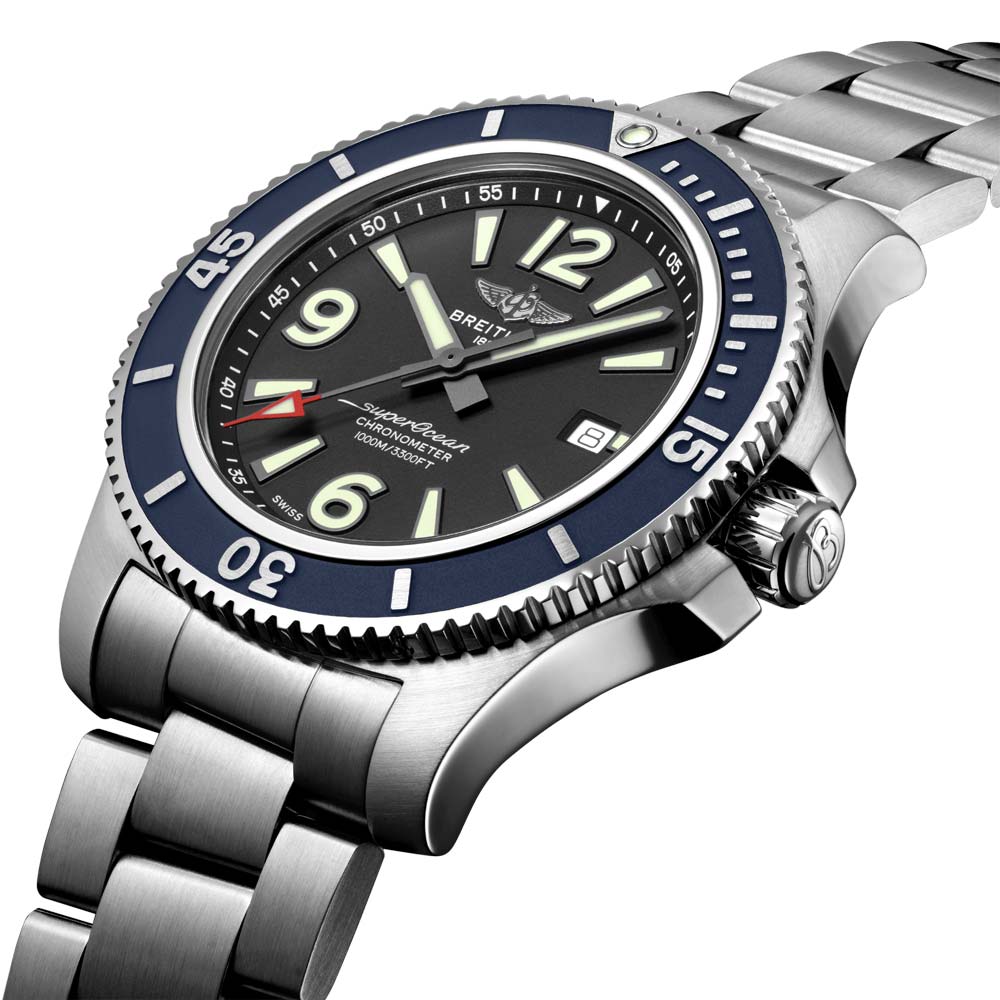 Engineered for optimal performance. the Superocean Automatic 44 is ideal for men seeking a sporty look with superior style. This reliable 44mm stainless-steel case is suited for aquatic activities—swimming. diving and surfing—up to 1000 meters/100 bar. Its vibrant dials and bracelets. either stainless-steel or rubber. with stainless-steel pin buckles or folding clasps. provide an eye-catching edge ideal for water or land.