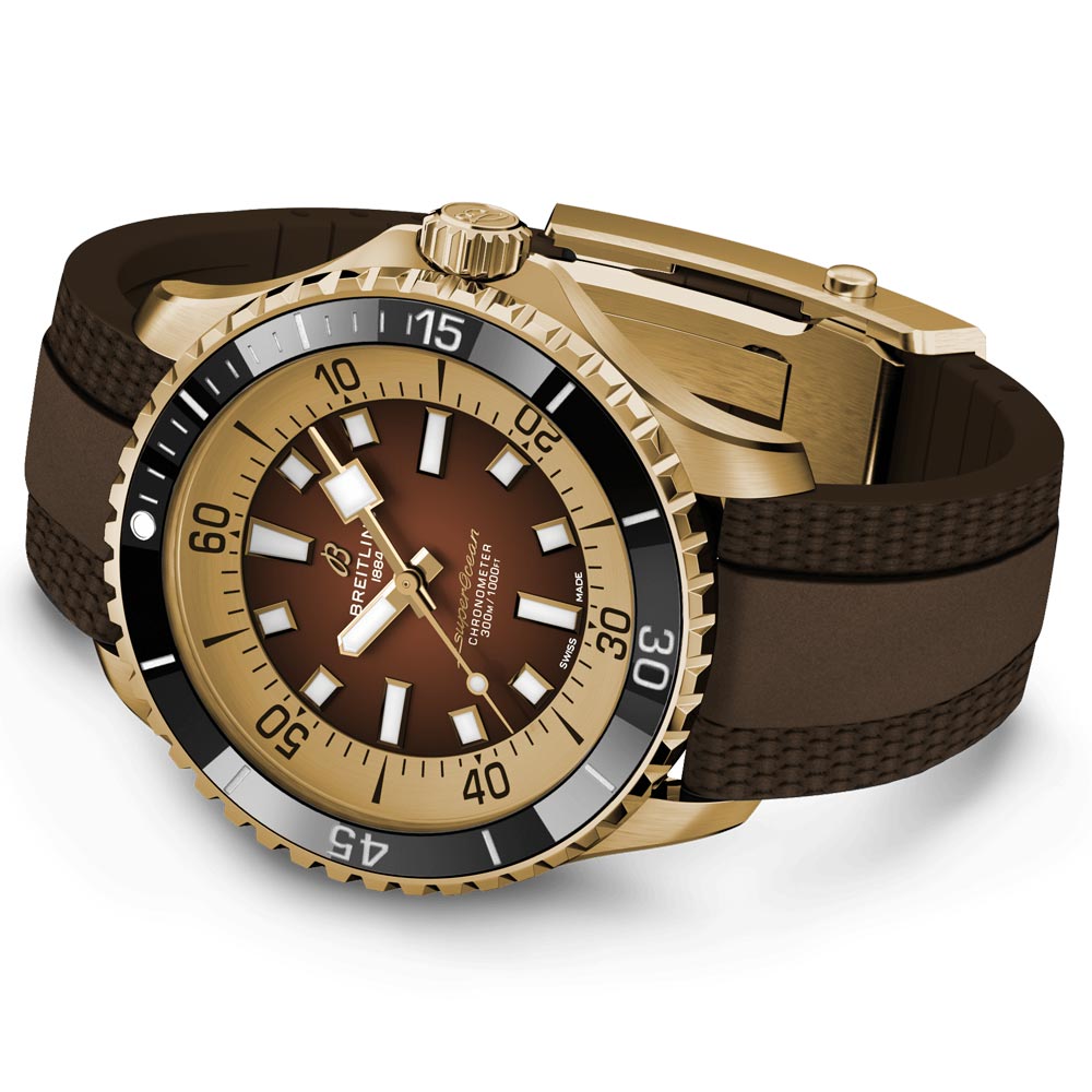 This Superocean is crafted with a corrosion-free alloy that develops a personalized patina with wear. With adjustable micro-adjustments up to 15 mm. both metal and rubber strap options feature a folding clasp for adjusted comfort in all activities. The scratch-resistant ceramic bezel won't damage or discolor. The bezel is unidirectional (except 46 mm) and has a patented secure fit. The Superocean not only excels in diving but is ideal for surfing. swimming. and other shore activities. as well as nights out. With vintage looks and modern style. this watch is a great choice.