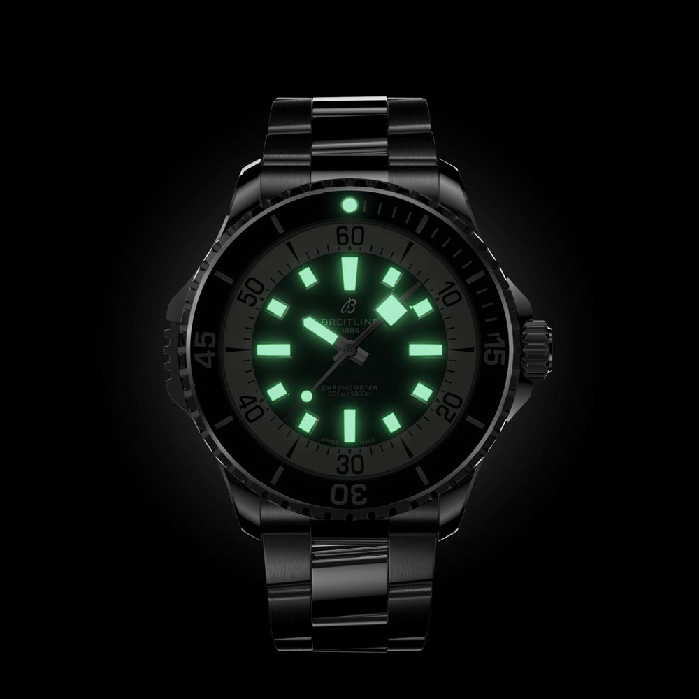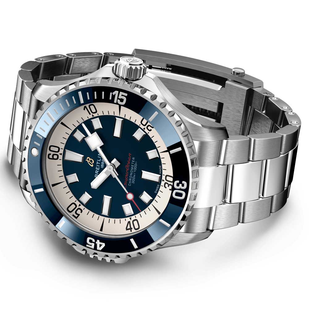 The new Superocean is highly practical. but its awe-inspiring aesthetic makes it stand out. Taking cues from the iconic Slow Motion strain. it exudes modernity via a ceramic-infused bezel and bright displays. Generously proportioned hands and markers are equipped with Super-LumiNova® illumination for optimum readability in aquatic environments. Furthermore. guaranteed to be waterproof to a depth of 300 m (1000 ft) and resistant to shock. sand and salt water. this timepiece is designed for ultimate ruggedness.