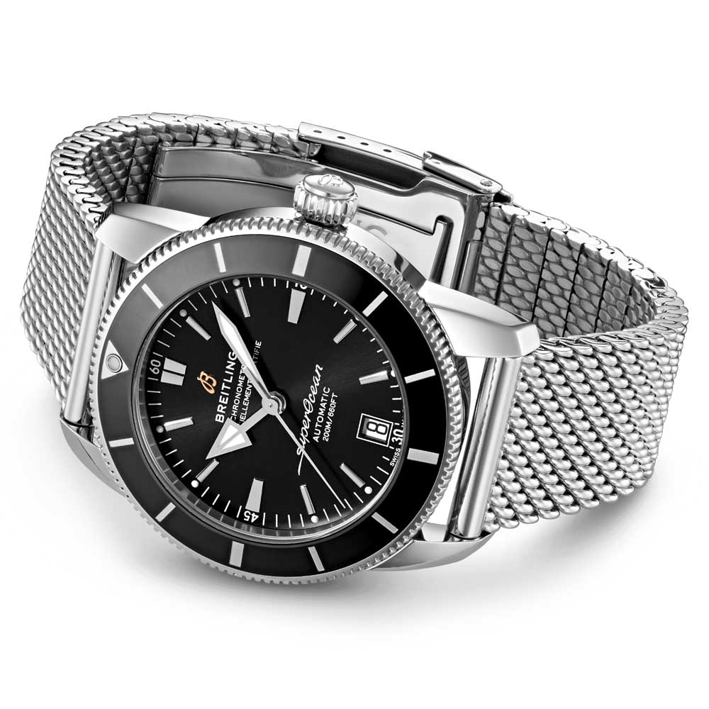 A tribute to the iconic 1957 model. the Superocean Heritage B20 Automatic 42 is the perfect partner for adventure. Reliable and original. it features an ultra-hard. scratchproof high-tech ceramic bezel and steel mesh bracelet. Its steel or steel & gold case is water-resistant to 200 m (660 ft). Housing an officially chronometer-certified self-winding Manufacture calibre. this is a Breitling watch with a mission