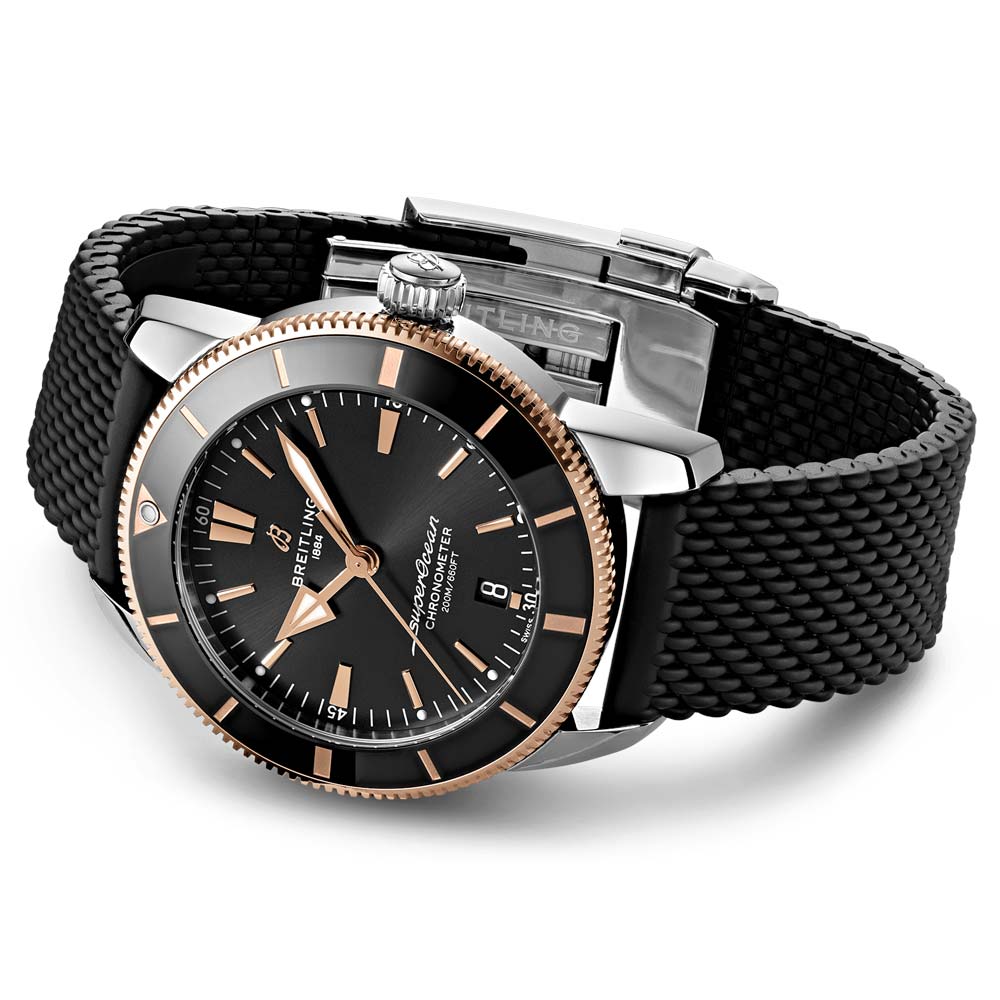 This sophisticated timepiece combines timeless style with contemporary features. The Superocean Heritage is an ideal example of maritime luxury. featuring iconic triangular hands. a unidirectional bezel with ceramic ring. and a range of 18ct red gold & steel sizes & colours with a mesh bracelet/rubber strap & folding buckle. Additionally. it is COSC-certified and powered by the reliable Breitling Calibre B20 (which is based on the Tudor MT5612).