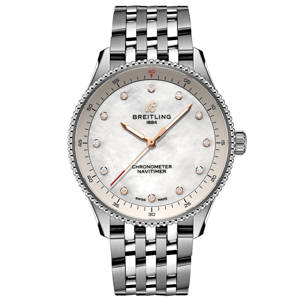 Breitling Navitimer 32mm MOP Diamond Dot Dial Quartz Ladies Watch A77320E61A2A1