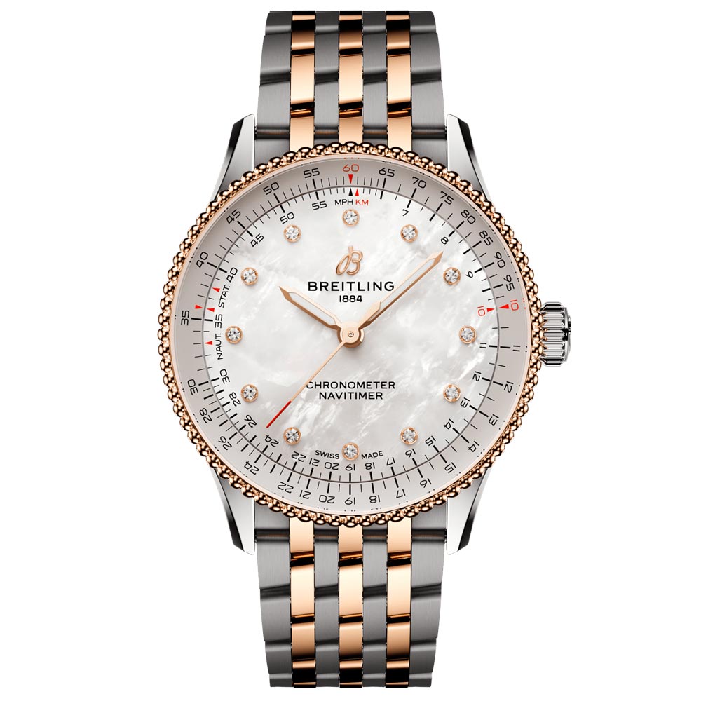 Breitling Navitimer 36mm MOP Diamond Dot Dial 18ct Rose Gold and Steel Automatic Ladies Watch U17327211A1U1