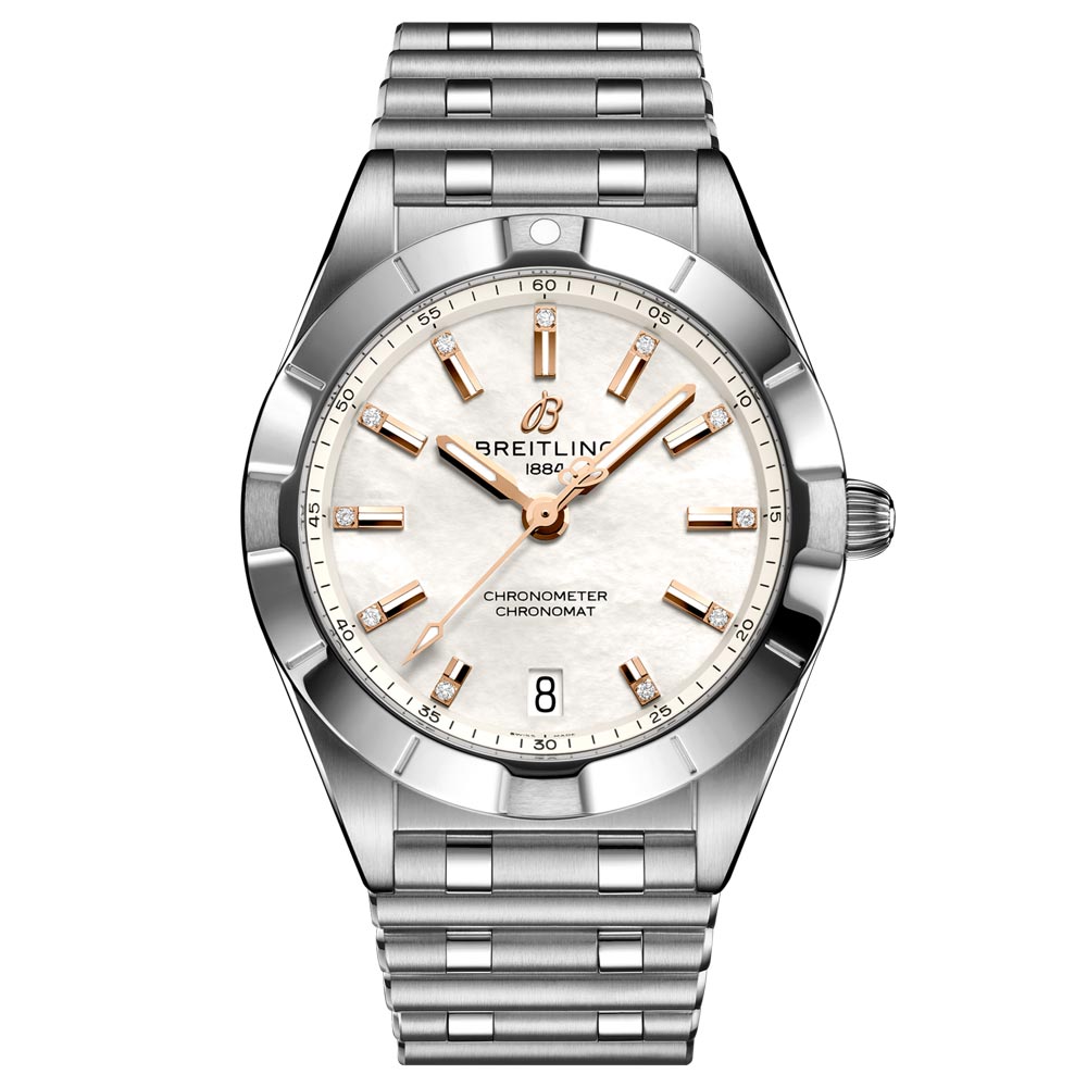 Breitling Chronomat 32mm MOP Diamond Dot Dial Ladies Quartz Watch A77310101A4A1
