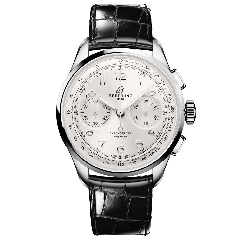 Breitling Premier B09 Chronograph 40mm Silver Dial Manual Wound Gents Watch AB0930371G1P1
