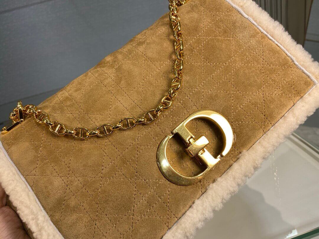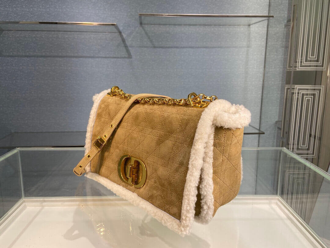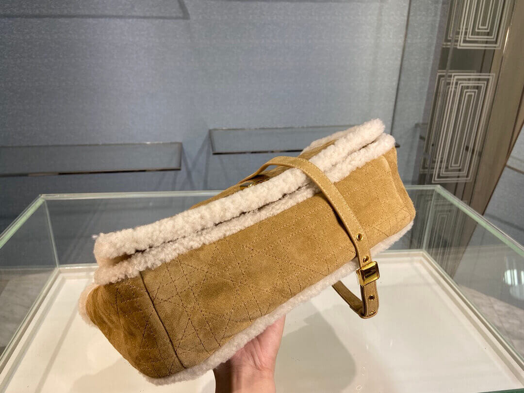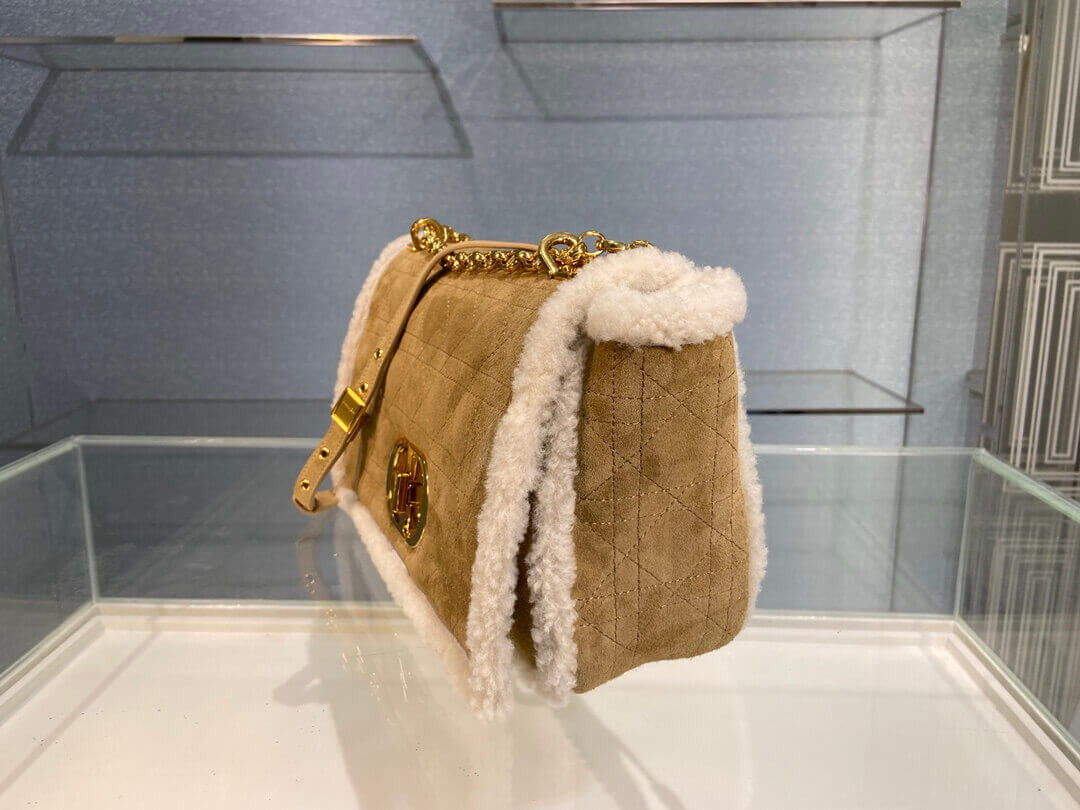 • Christian Dior 30 Montaigne Bag in Camel-Colored Shearling M9203