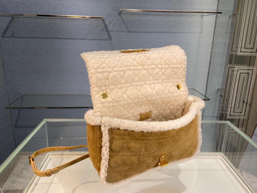 Christian Dior 30 Montaigne Bag in Camel-Colored Shearling M9203