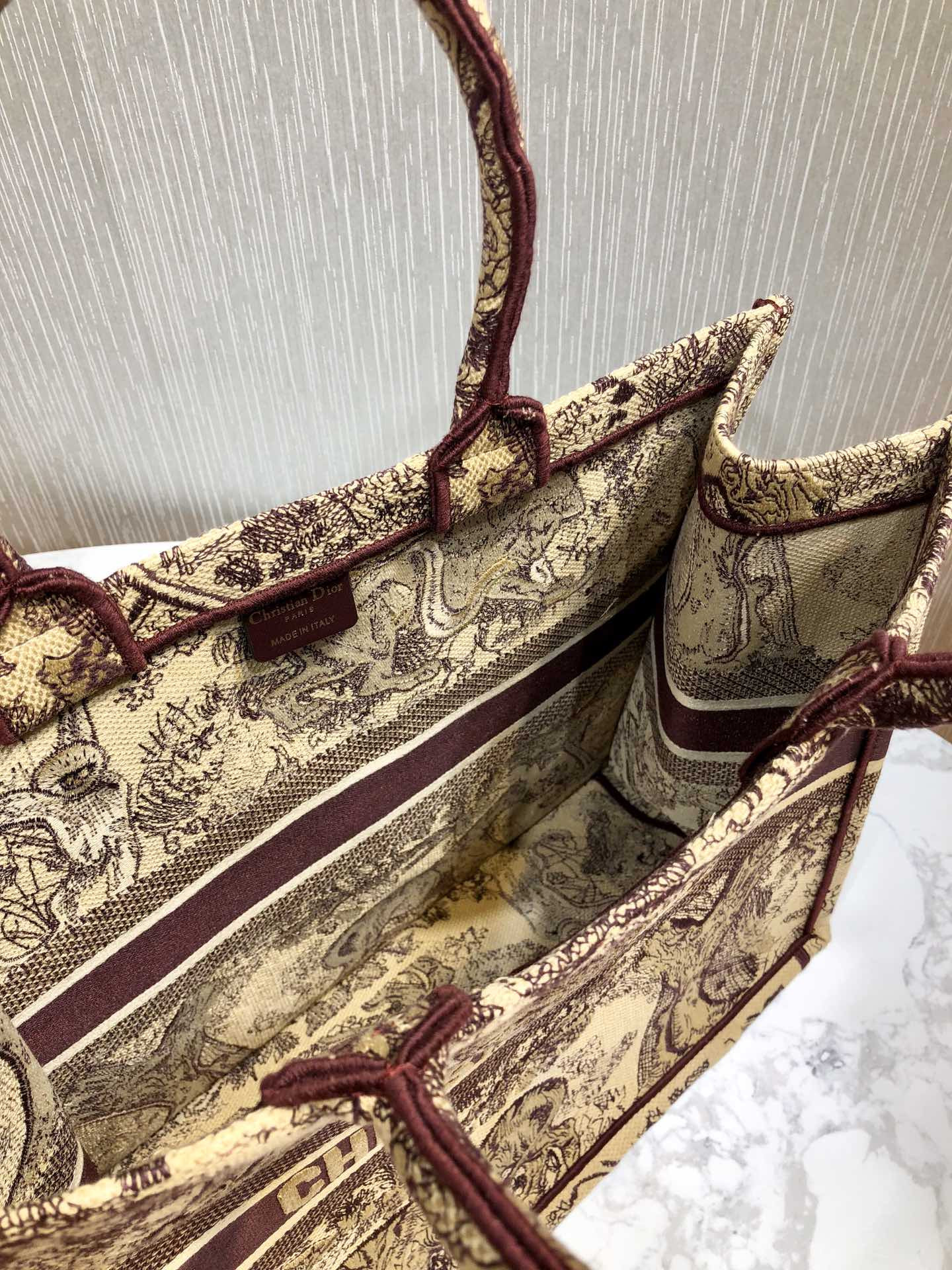Dior Book Tote bag in canvas embroidered with a black Toile de Jouy motif.