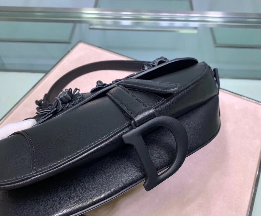 Saddle bag in lambskin with embroidered flowers.