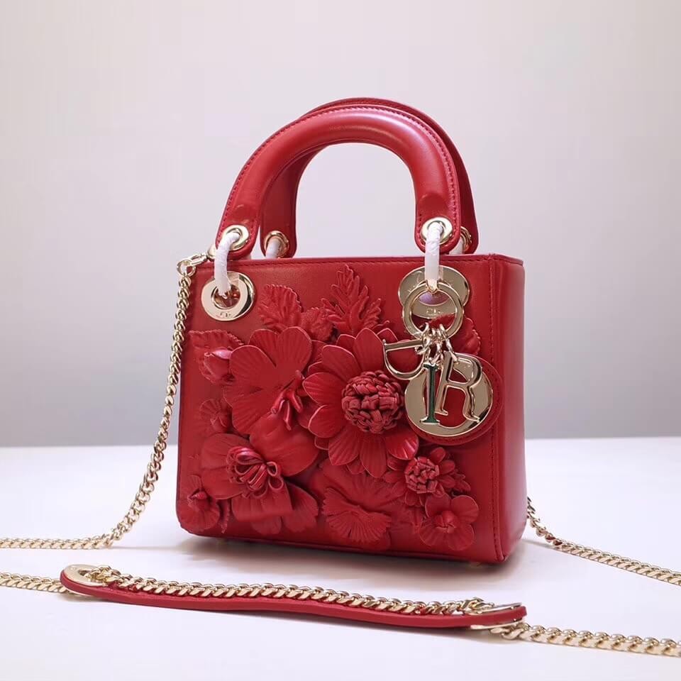 • Christian Dior Lambskin Embroidered Flowers Mini "Lady Dior" Bag M0565