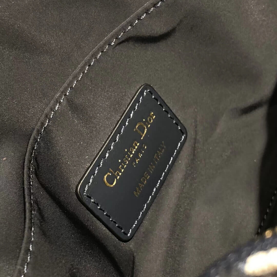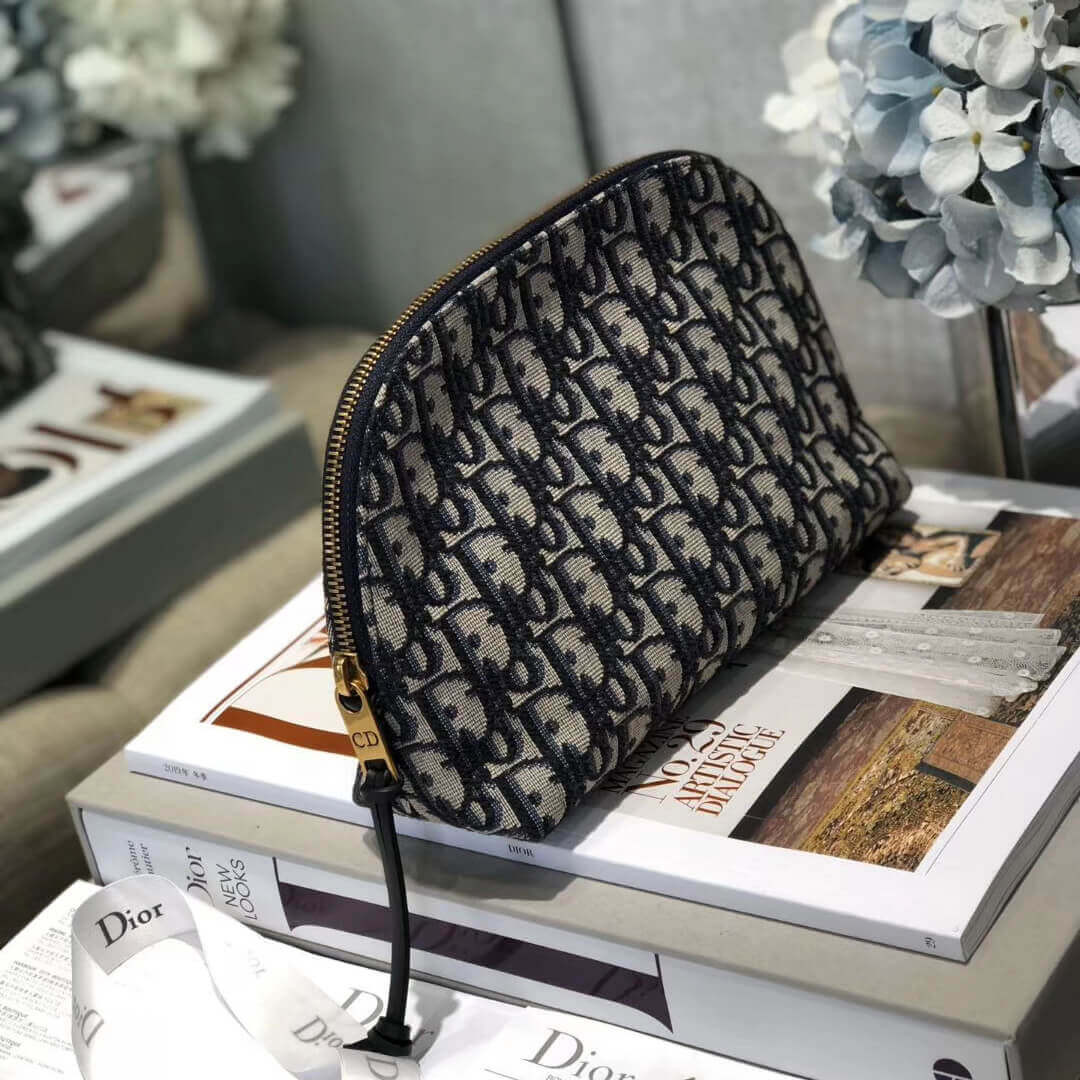 Large beauty bag in blue Dior Oblique jacquard canvas with blue calfskin leather details.
