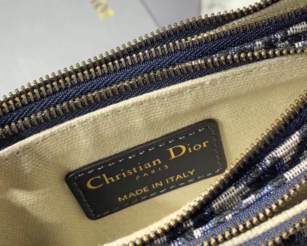 Saddle zipped clutch in blue Dior Oblique jacquard canvas with blue calfskin leather details.