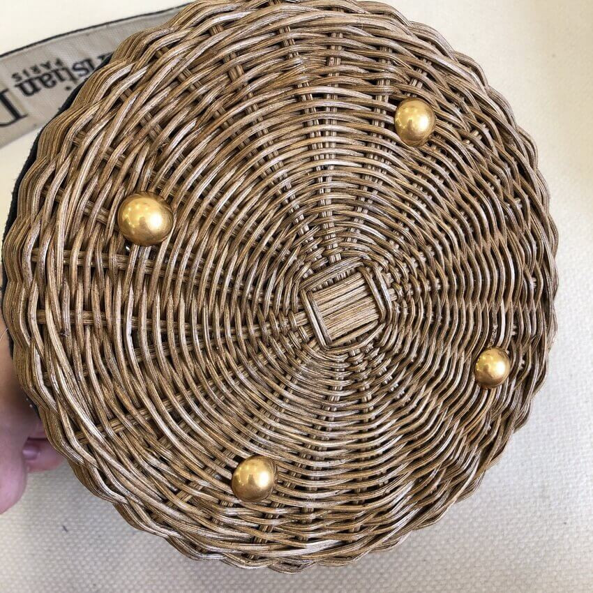 The Dior Wicker bucket bag is a timeless creation traditionally crafted in natural hand-woven wicker and exemplifies Dior's savoir-faire. The design features a blue Dior Oblique jacquard interior pouch with a patch pocket and drawstring closure. Inspired by the hallmark Dior Book Tote, it showcases a band embroidered with the 'CHRISTIAN DIOR' signature, while the wide embroidered shoulder strap allows it to be worn over the shoulder or crossbody.