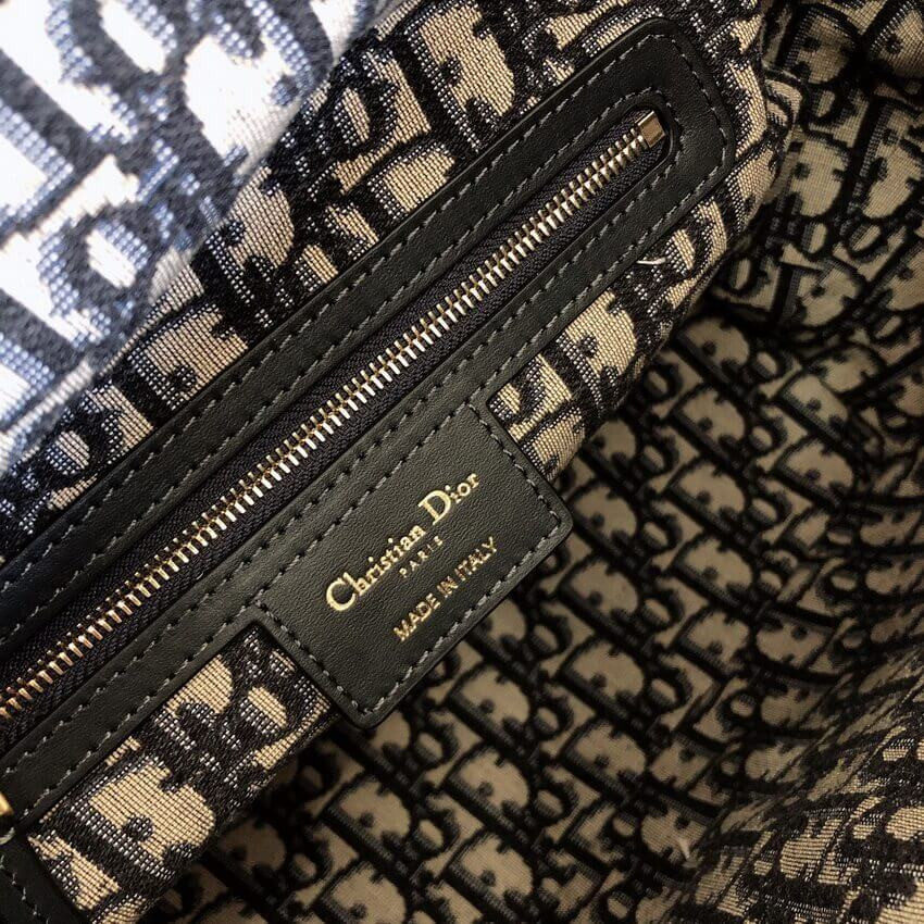 - Blue Dior Oblique jacquard interior with leather drawstring
