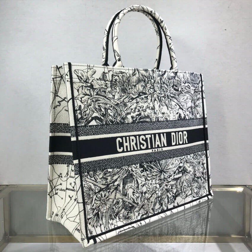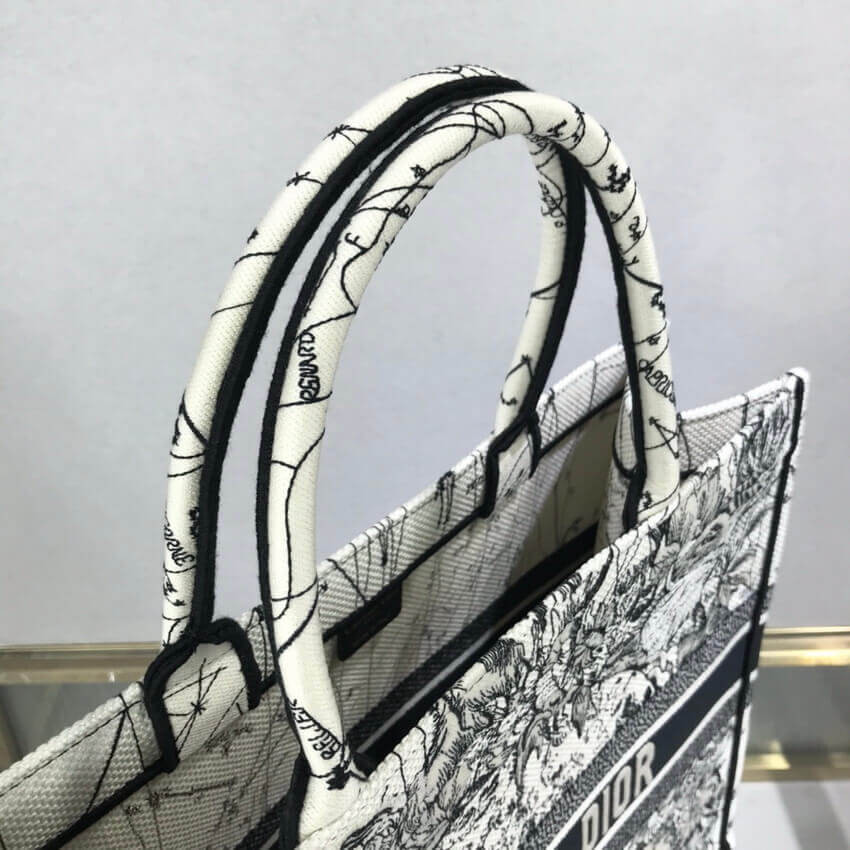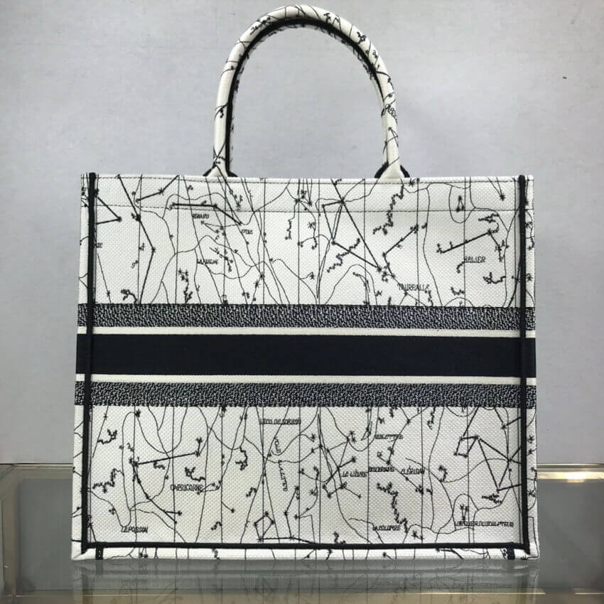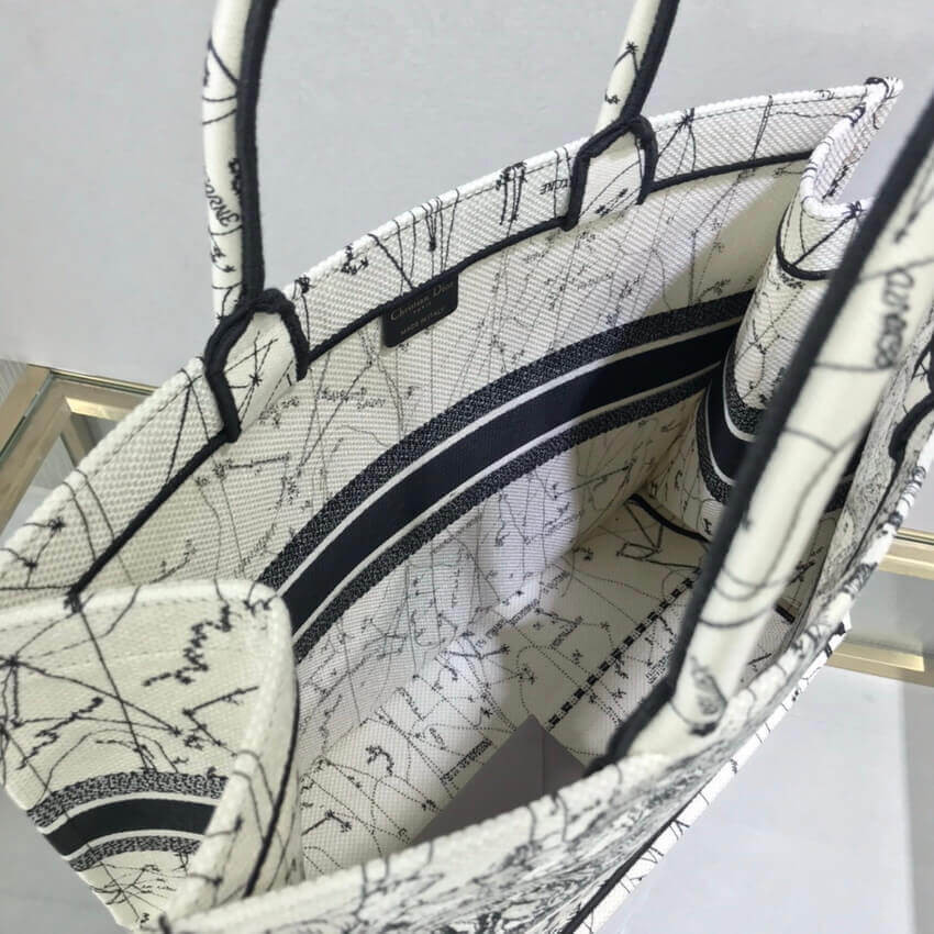 The Dior Book Tote, an original style introduced by Creative Director Maria Grazia Chiuri, has become a staple of the Dior aesthetic. This latte silhouette is fully embroidered with the Dior Zodiac motif, channeling Mr. Dior's fascination for astrology. Adorned with the 'Christian Dior' signature, the Dior Book Tote exemplifies the House's signature savoir-faire.