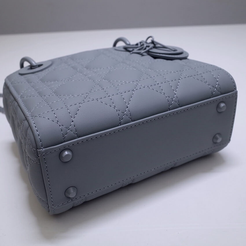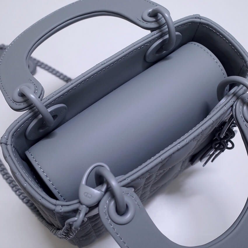 The Lady Dior handbag epitomizes the House's vision of elegance and beauty. A sleek, refined bag, it is timeless yet modern. Crafted in black ultramatte calfskin and covered with Cannage stitching, it showcases an iconic and instantly recognizable quilted texture. The tonal metal 'D.I.O.R.' charms further embellish and illuminate its silhouette. Featuring a removable chain shoulder strap, the miniature Lady Dior bag can be carried by hand, worn over the shoulder or crossbody as an ideal evening companion.