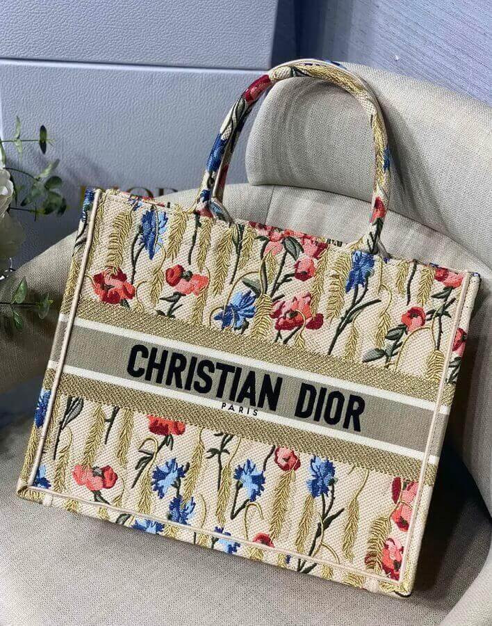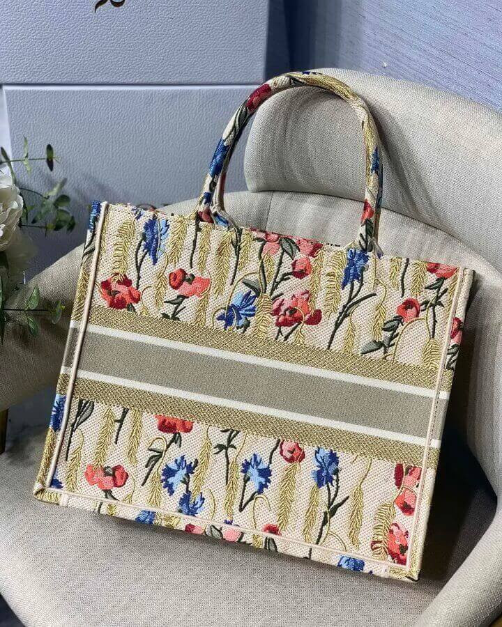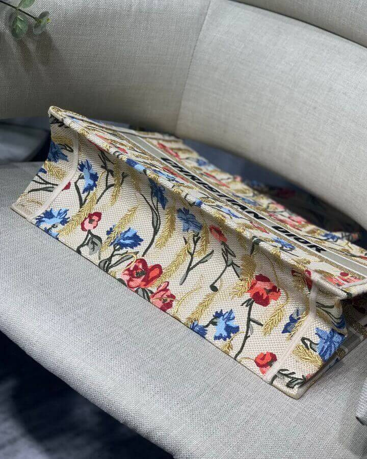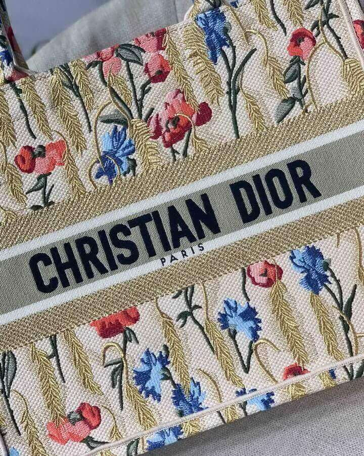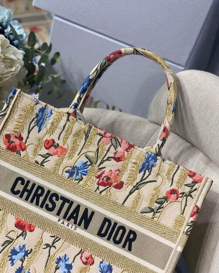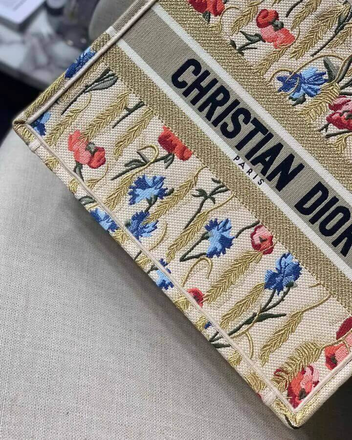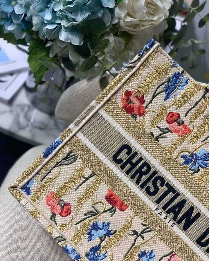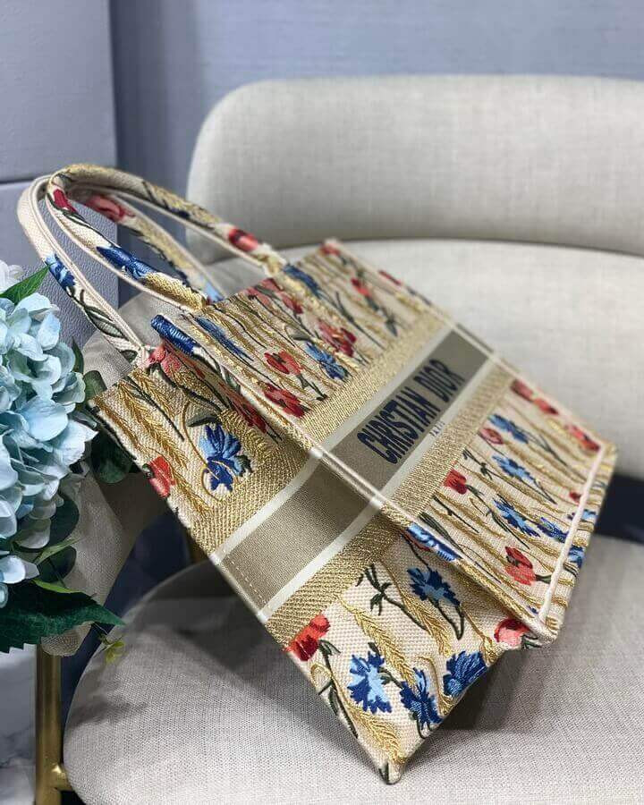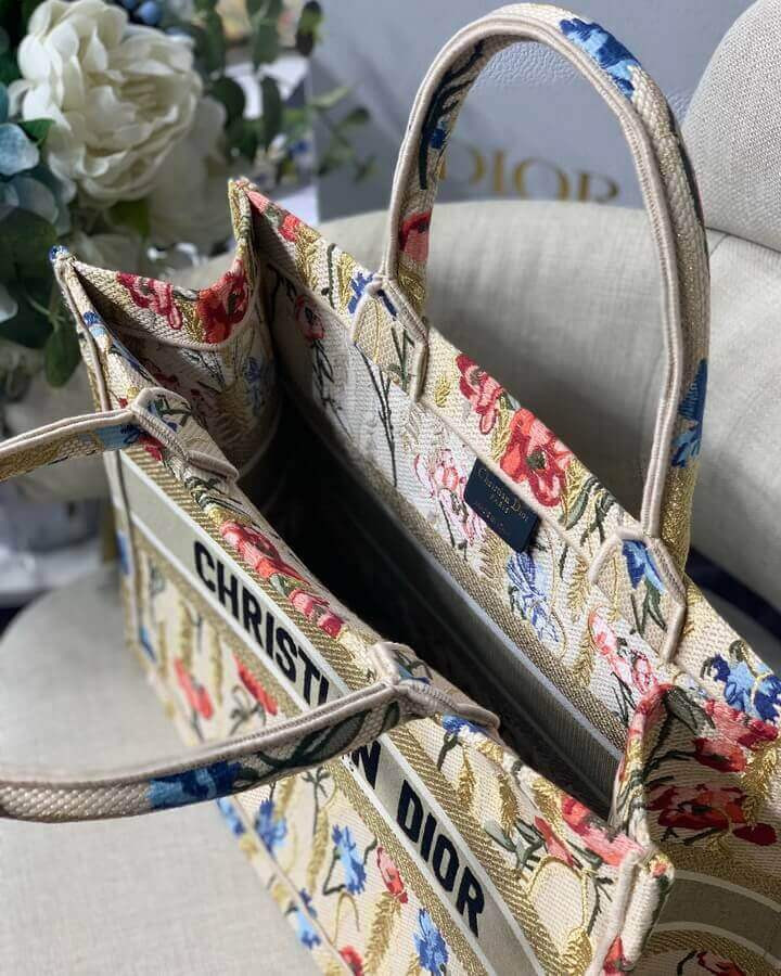 Dior Small Book Tote in Hibiscus Metallic Thread Embroidery M1296