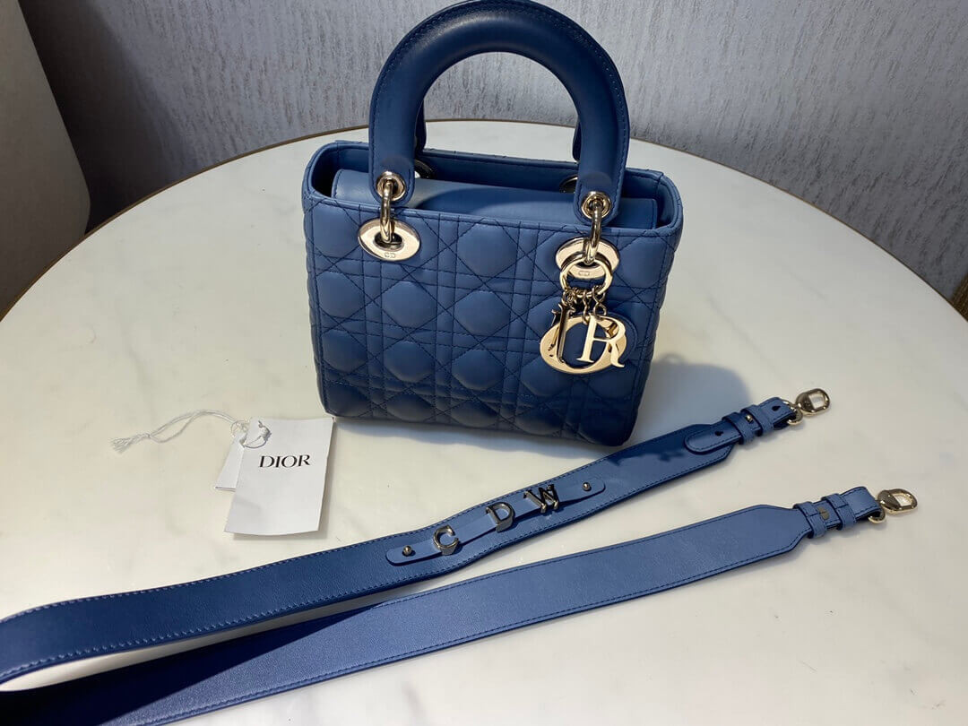 The Lady Dior My ABCDior bag epitomizes Dior's vision of elegance and beauty. A sleek, refined bag, it is timeless yet modern. This season, the style is crafted with pink lambskin and covered with the iconic Cannage stitching, further embellished with a gradient finish. The pale gold-finish metal 'D.I.O.R.' charms enhance its silhouette. The unique design may be personalized with pins placed on its shoulder strap.