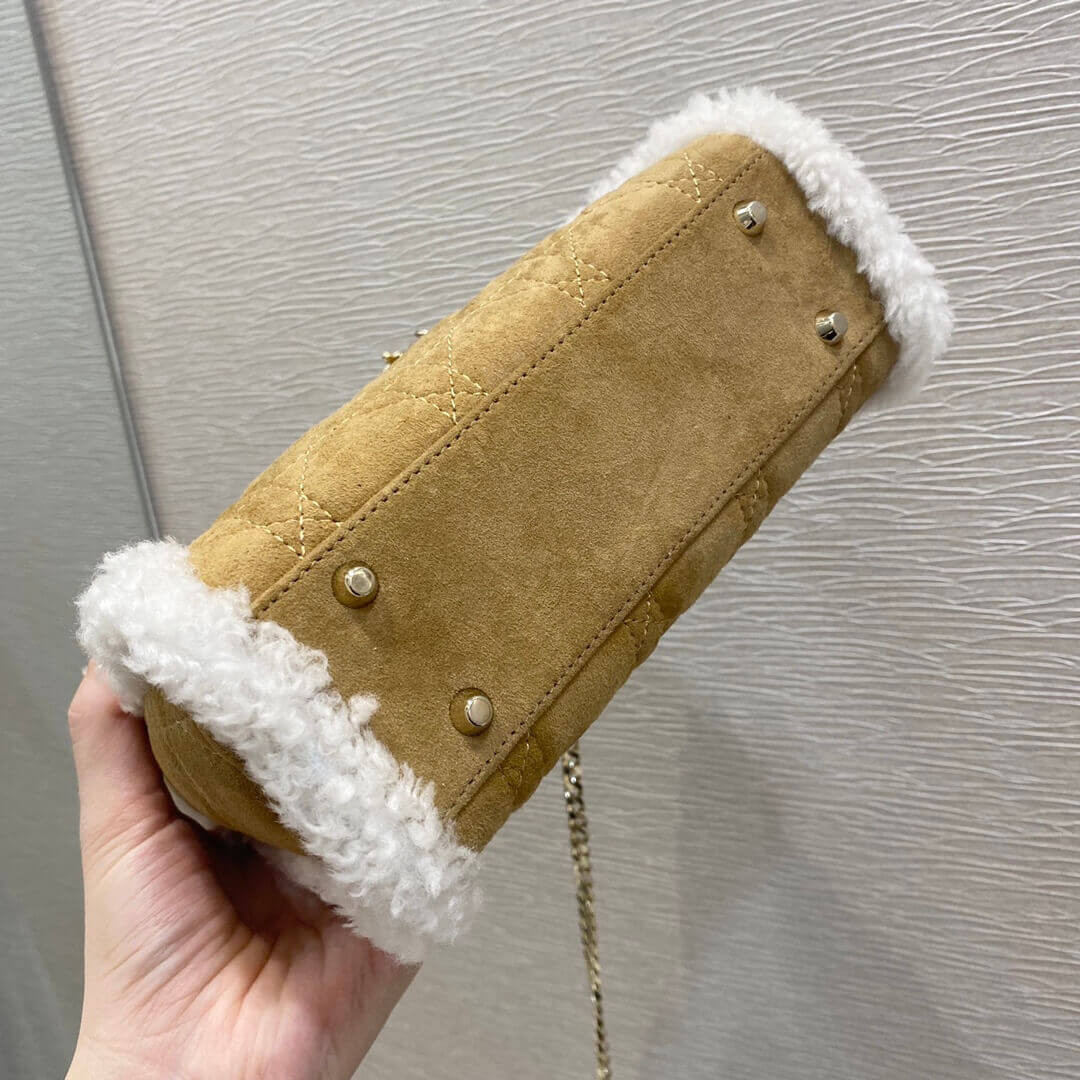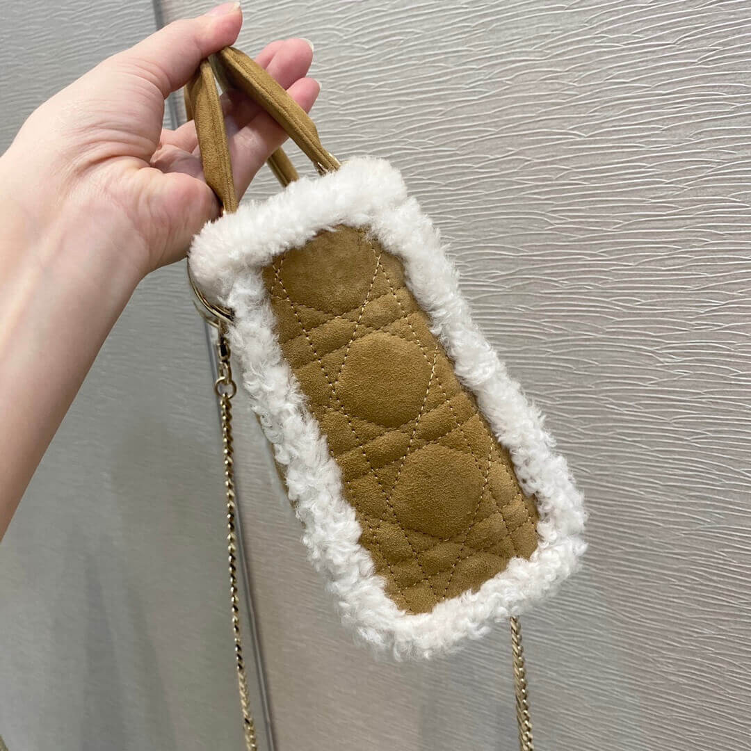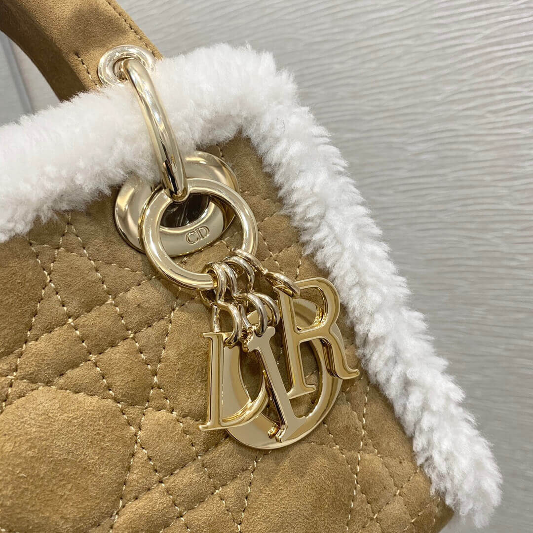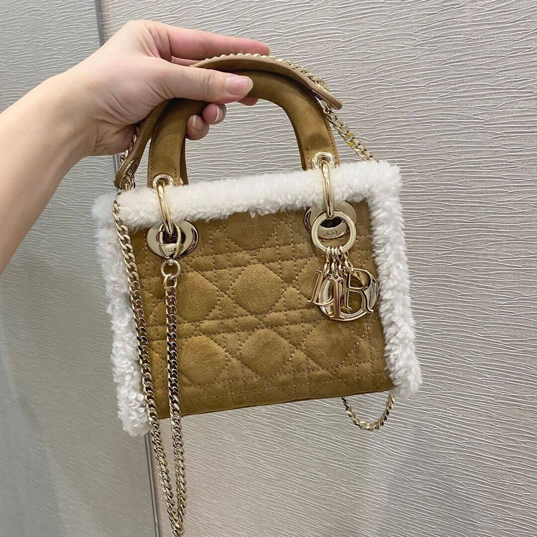 The Lady Dior bag epitomizes Dior's vision of elegance and beauty. Sleek and refined, the timeless yet relevant style is crafted in black lambskin with Cannage stitching, creating the instantly recognizable quilted texture. The pale silver-finish metal 'D.I.O.R.' charms are adorned with smoky crystals, adding further embellishment to the silhouette. Featuring a removable chain shoulder strap, the mini Lady Dior bag is the ideal evening companion.