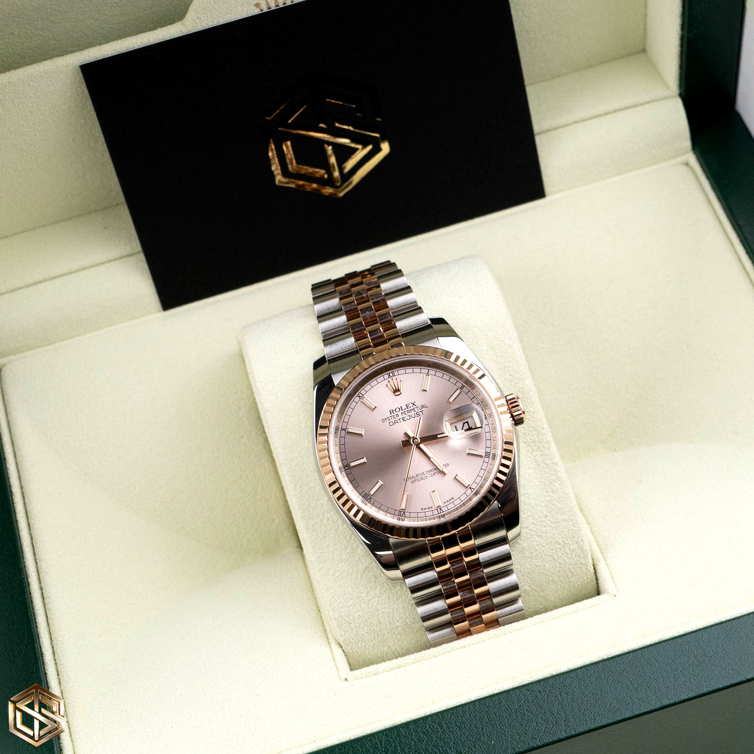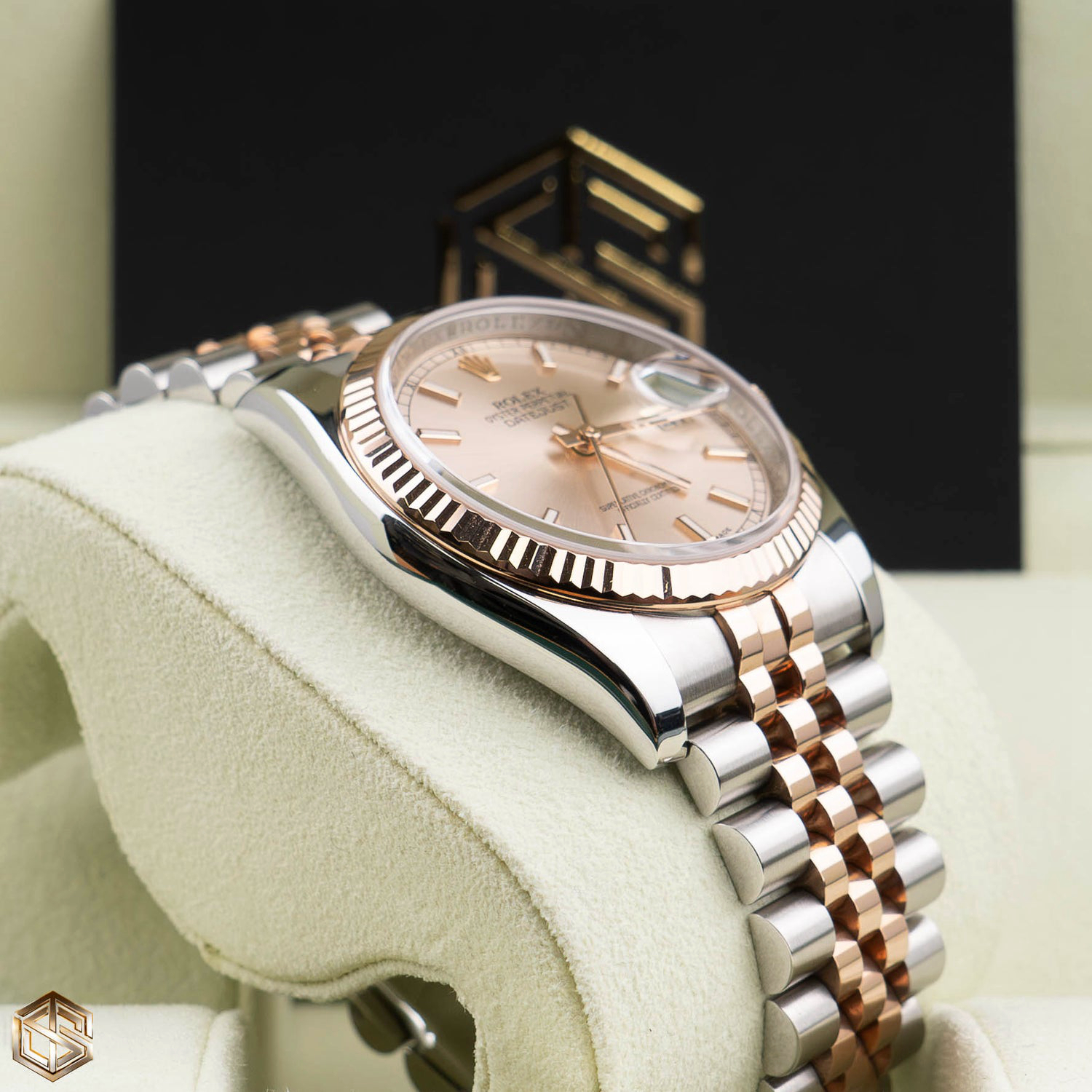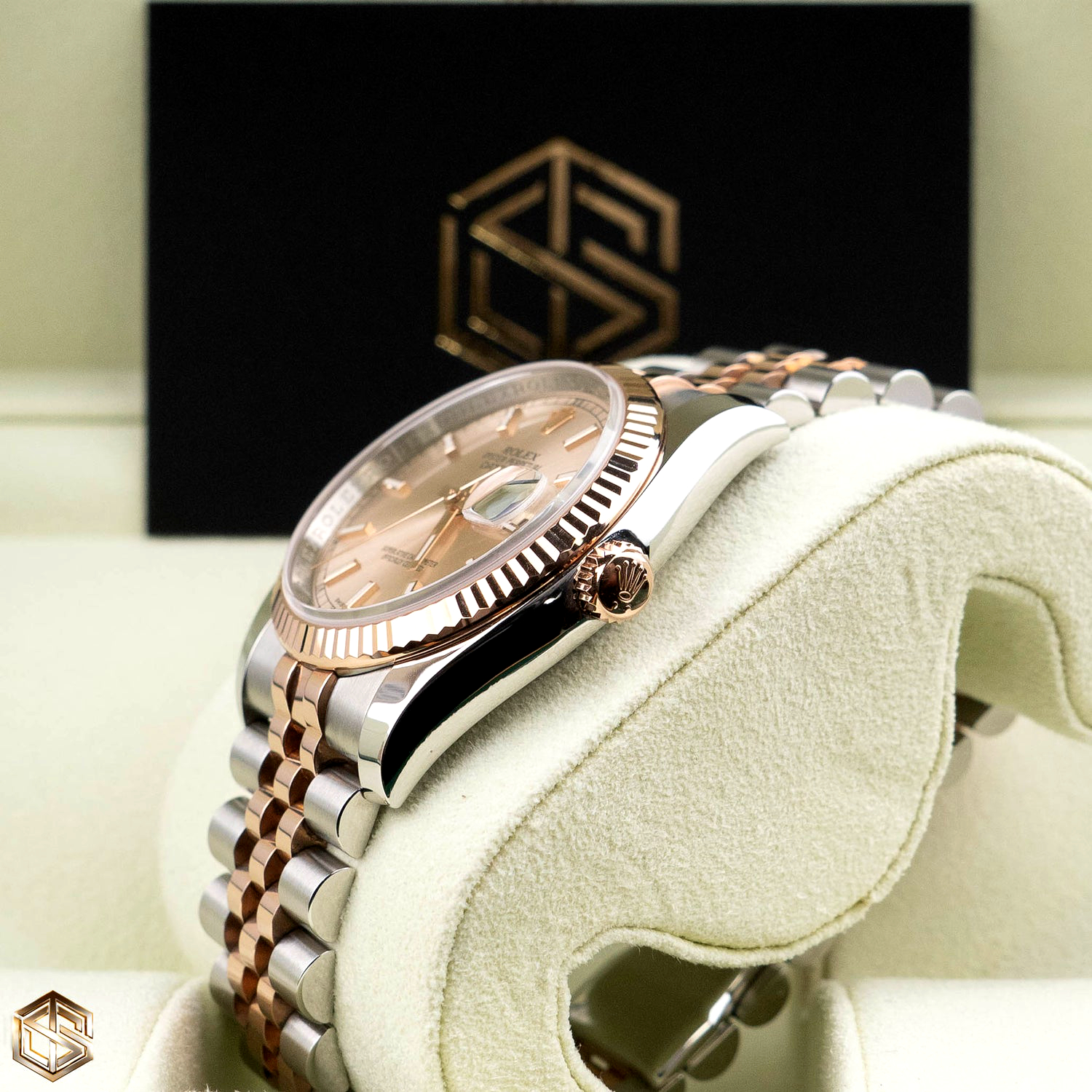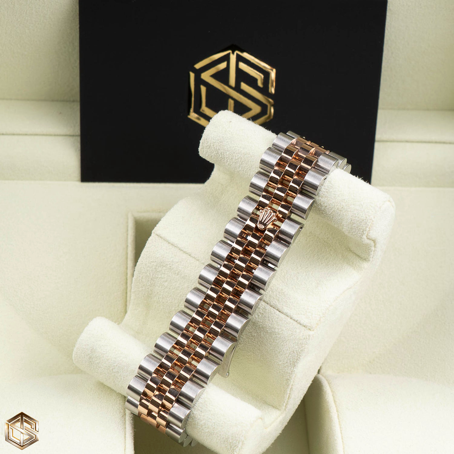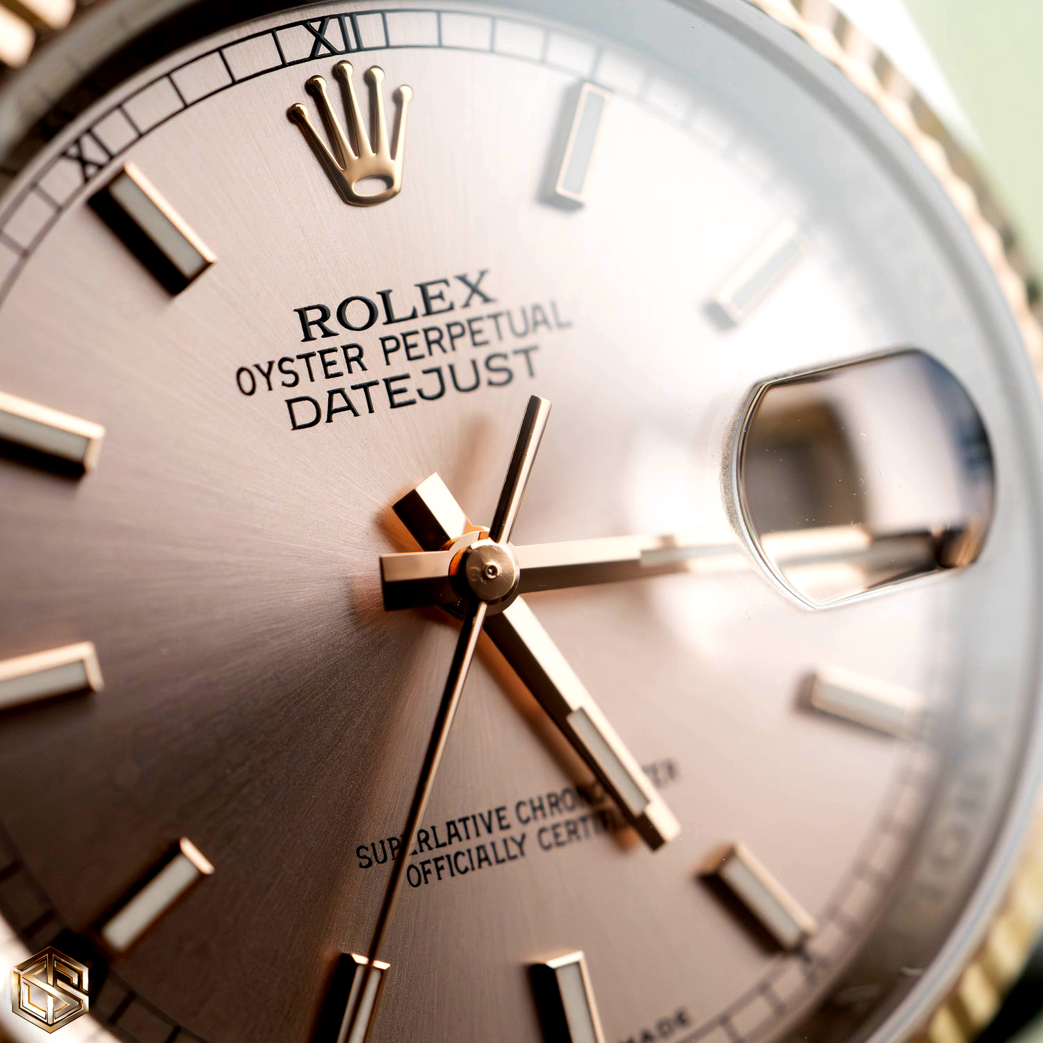 The light reflections on the case sides and lugs highlight the elegant profile of the 36 mm Oyster case, which is fitted with a fluted bezel. Aesthetically, the Datejust has spanned eras, while retaining the enduring codes that make it, notably in its traditional versions, one of the most recognized and recognizable of watches.