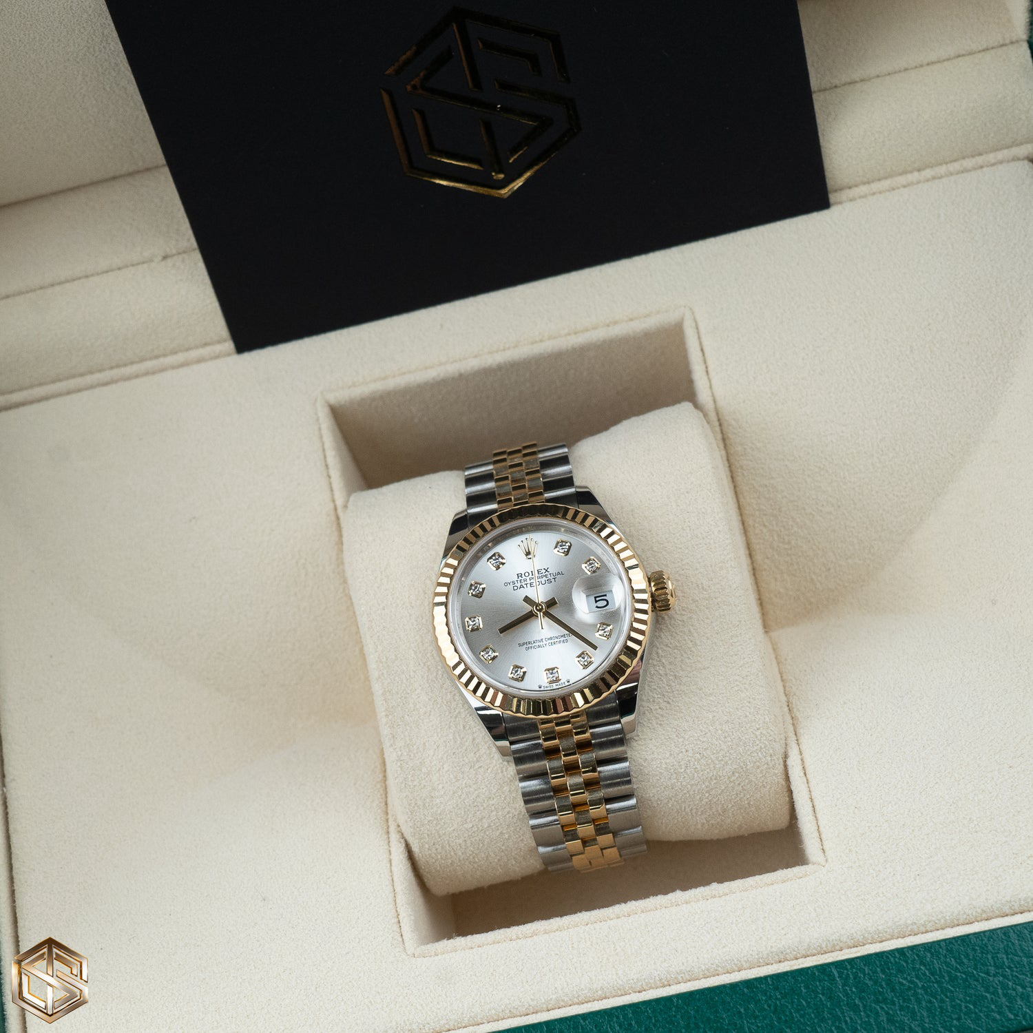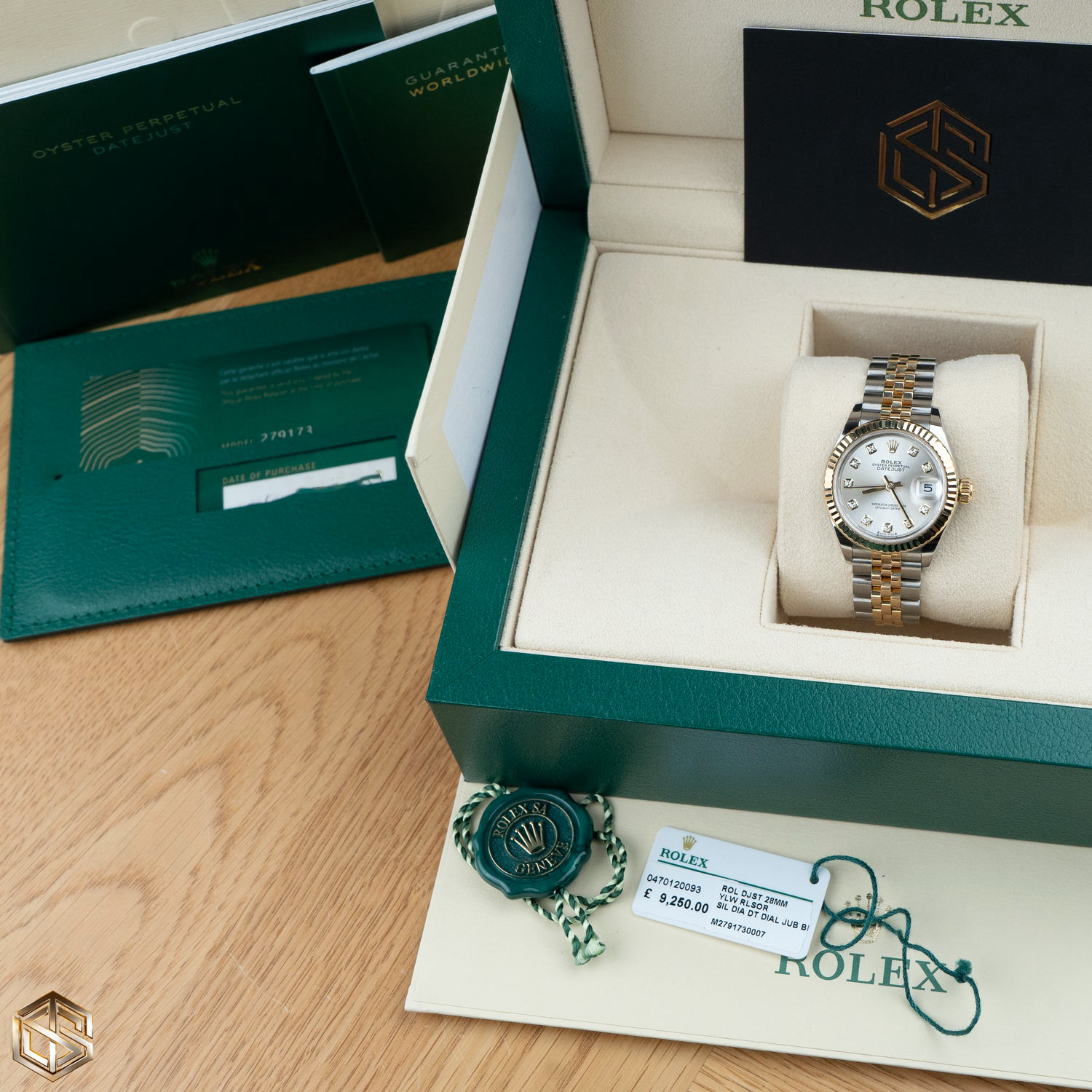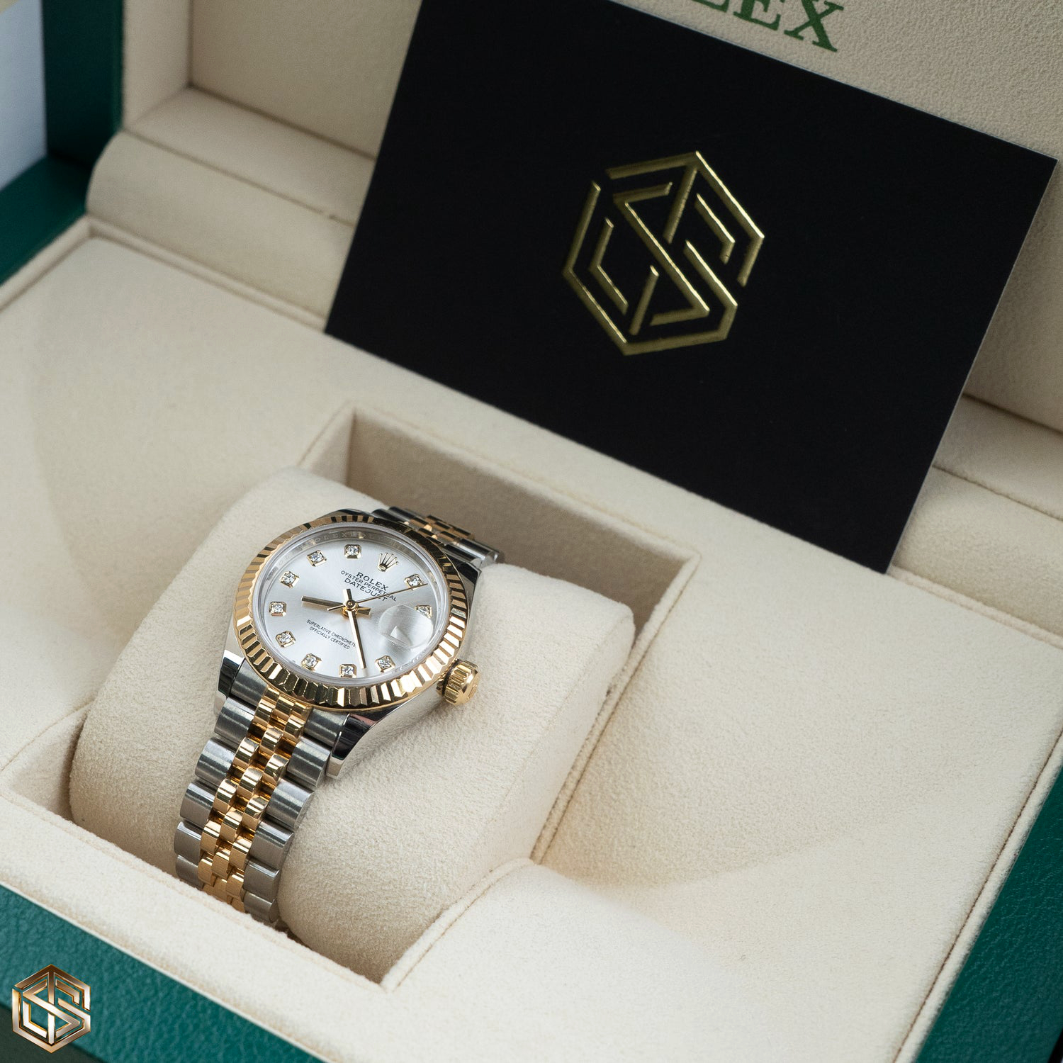 Rolex Oyster Perpetual Datejust 28 Watch, champagne dial, Fluted bezel, Two-tone Jubilee bracelet 279173.