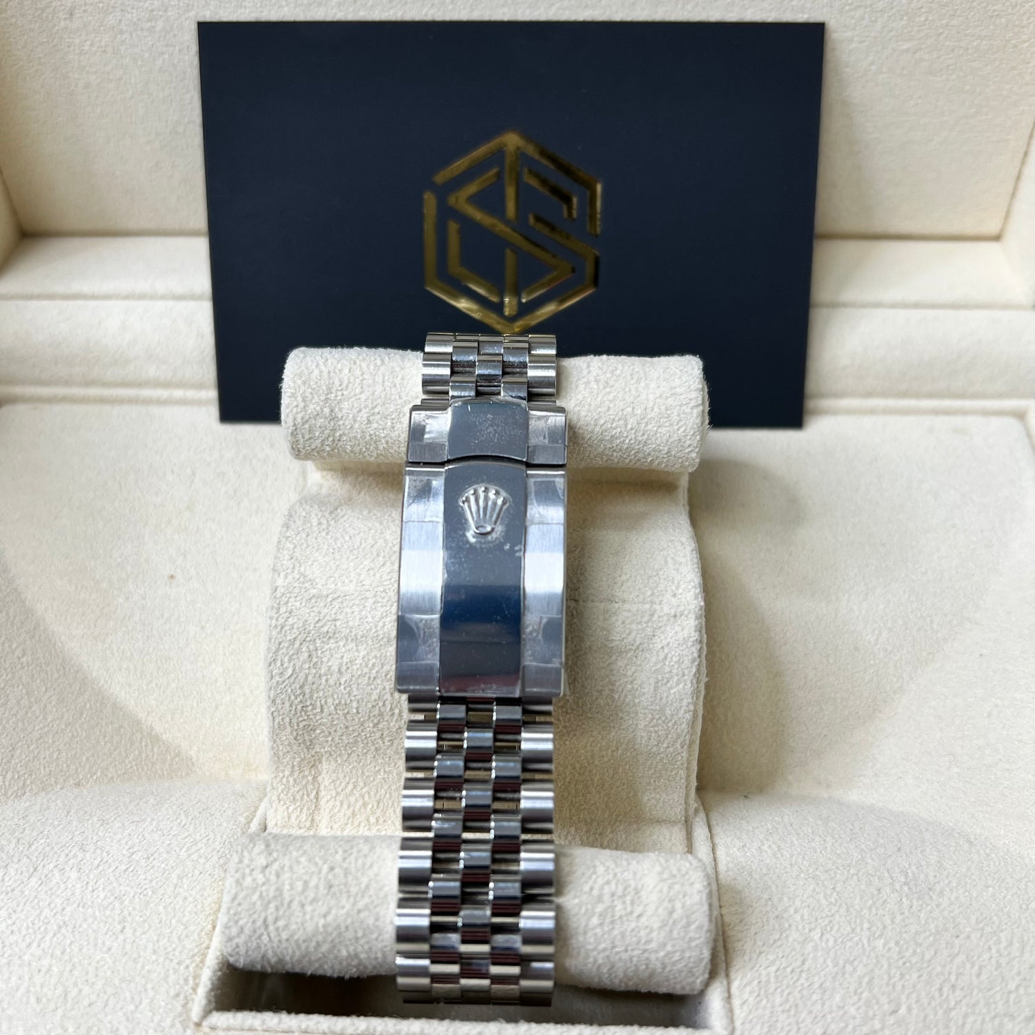 The light reflections on the case sides and lugs highlight the elegant profile of the 41 mm Oyster case, which is fitted with a fluted bezel. Aesthetically, the Datejust has spanned eras, while retaining the enduring codes that make it, notably in its traditional versions, one of the most recognized and recognizable of watches.