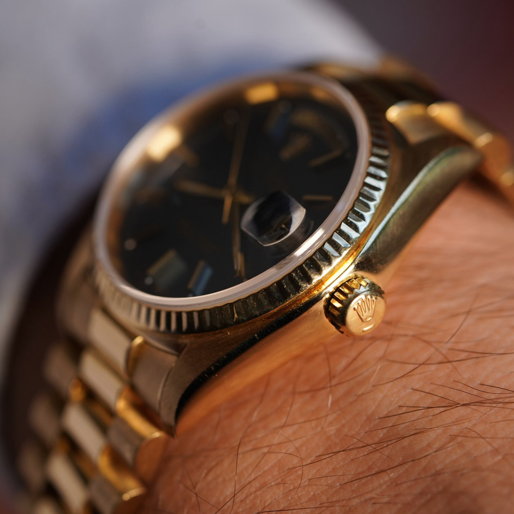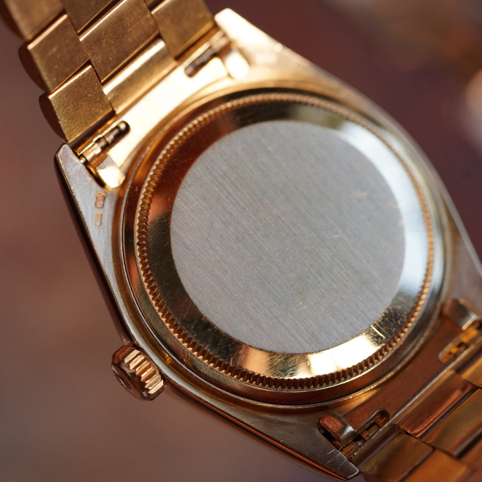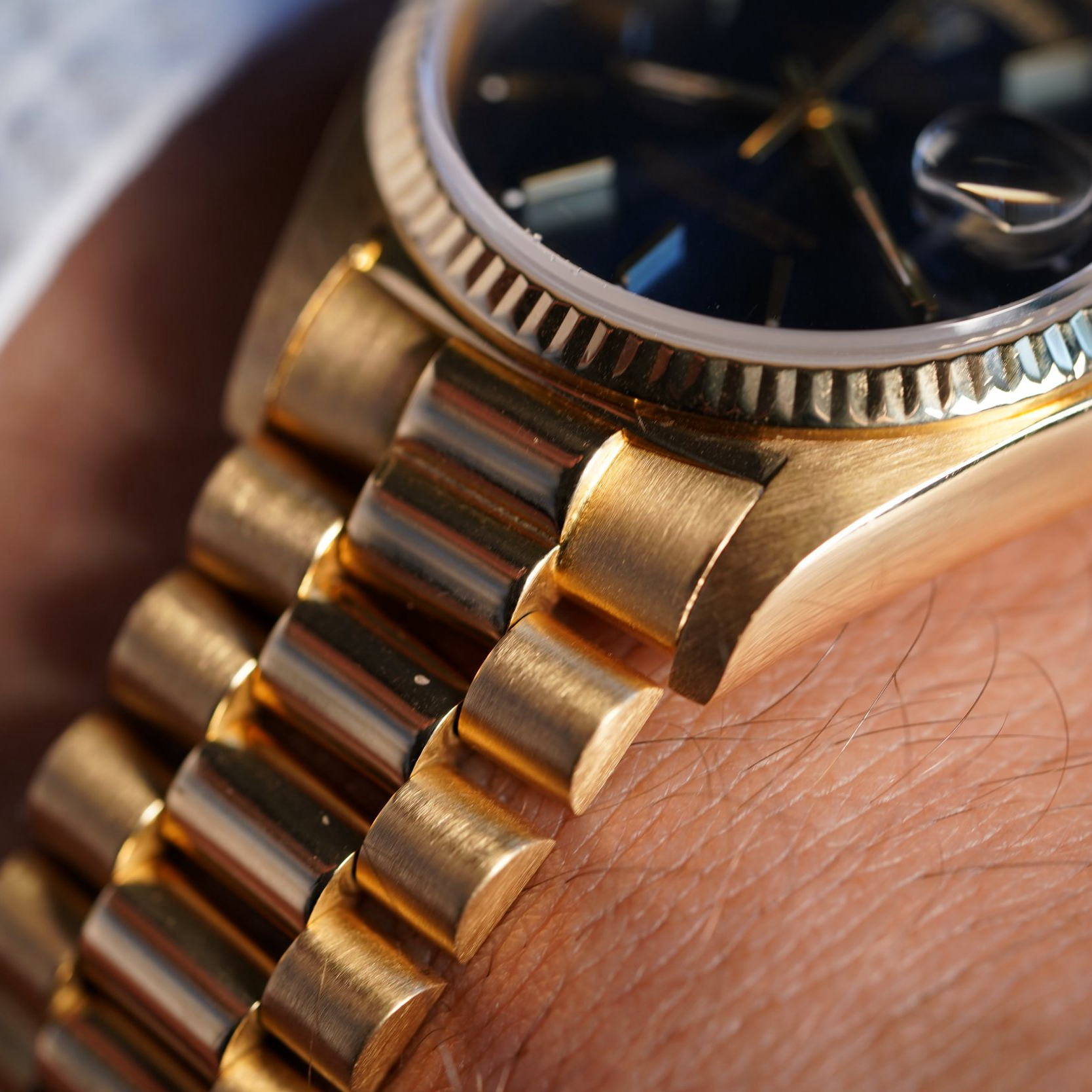 The Rolex fluted bezel is a mark of distinction. Originally, the fluting of the Oyster bezel had a functional purpose: it served to screw the bezel onto the case helping to ensure the waterproofness of the watch. It was therefore identical to the fluting on the case back, which was also screwed onto the case for waterproofness, using specific Rolex tools. Over time, the fluting became an aesthetic element, a genuine Rolex signature feature. Today the fluted bezel is a mark of distinction, in gold on this Day-Date 40.