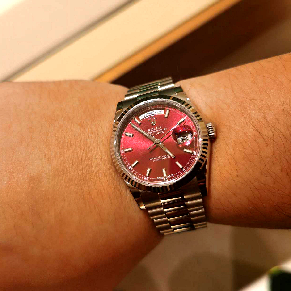| Series | Rolex Day Date 36mm President White Gold Cherry Red Dial Watch 118239 |
