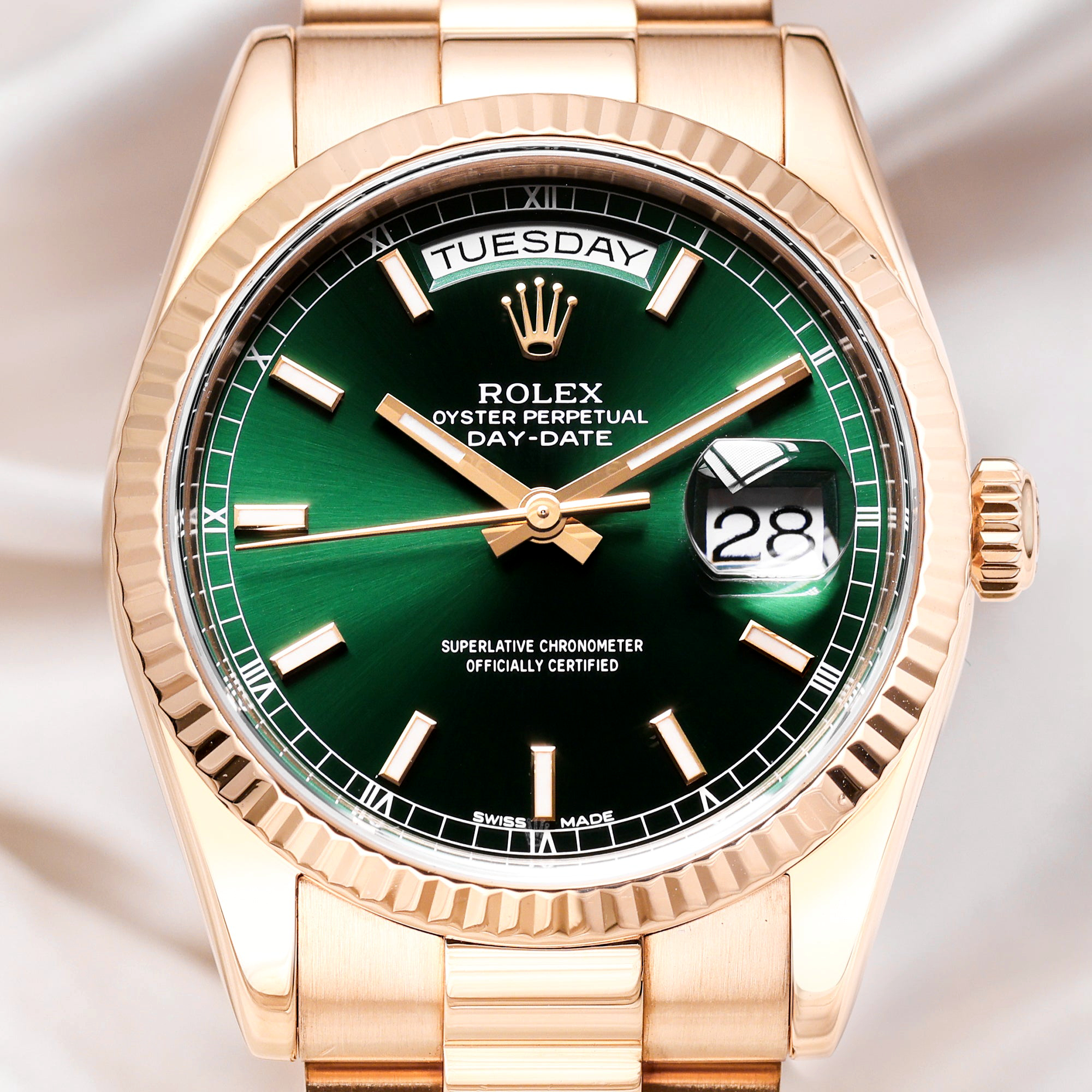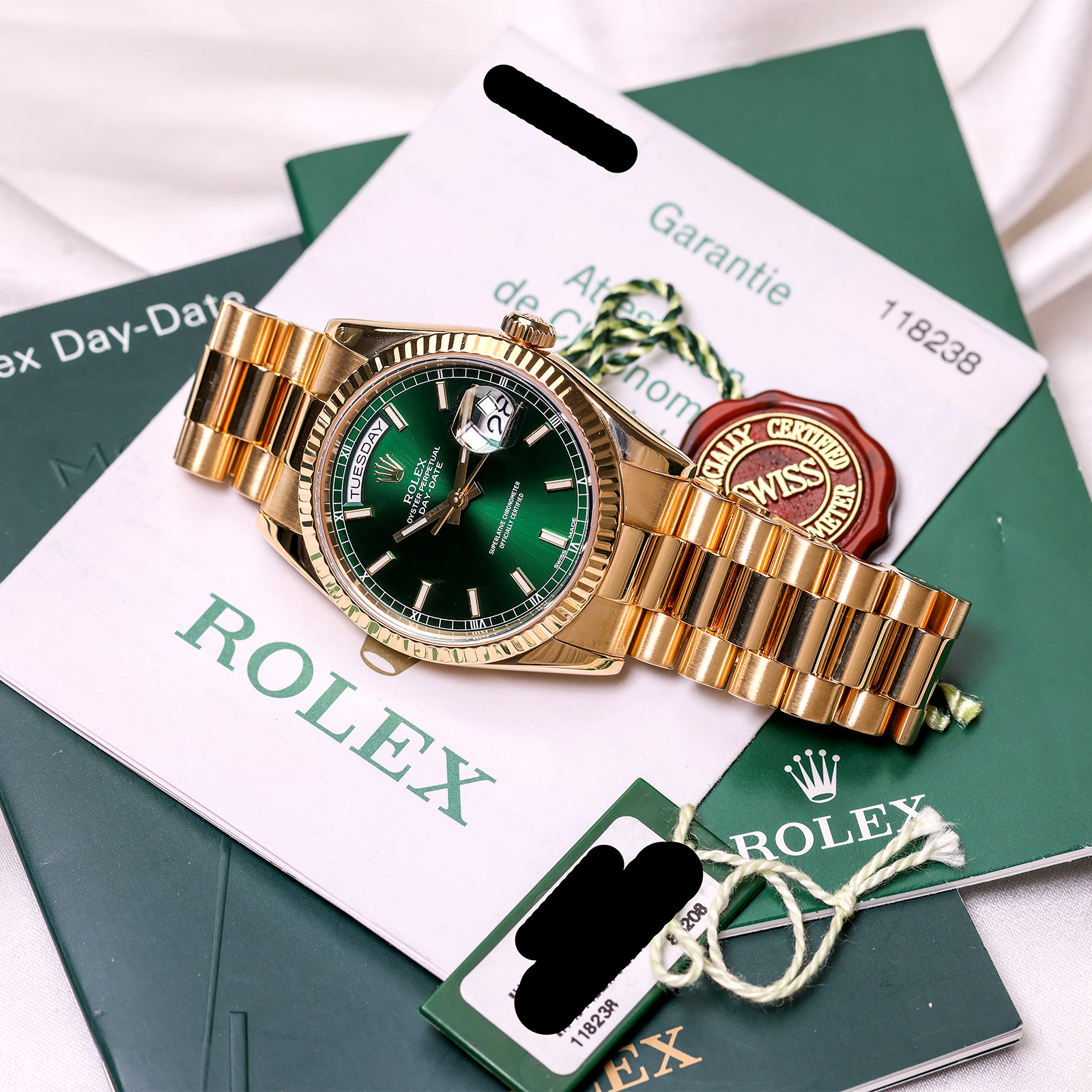 | Series | Rolex Day Date 36mm President Yellow Gold Green Dial Watch 118239 |