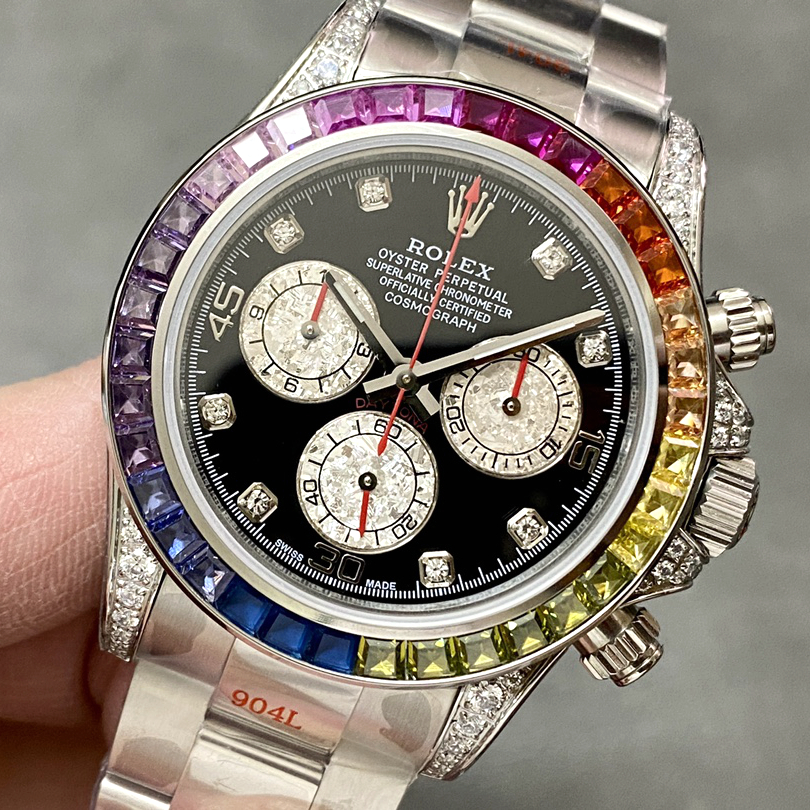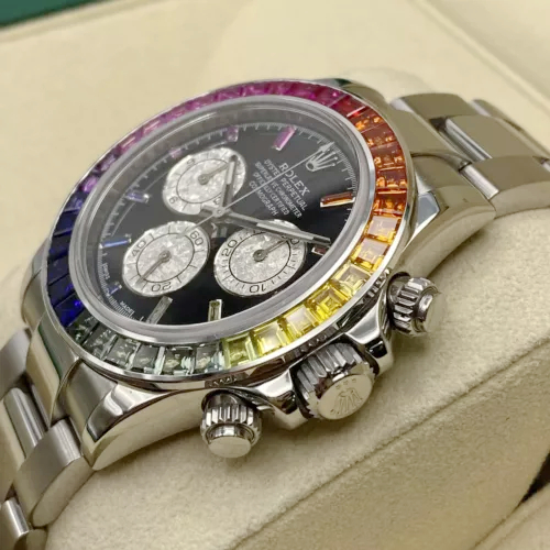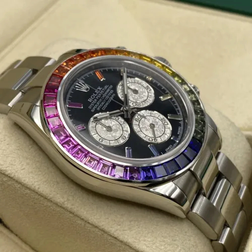 The Daytona 116520 Rainbow Diamonds and Sapphires Stainless Steel is the ultimate tool watch for those with a passion for driving and speed.