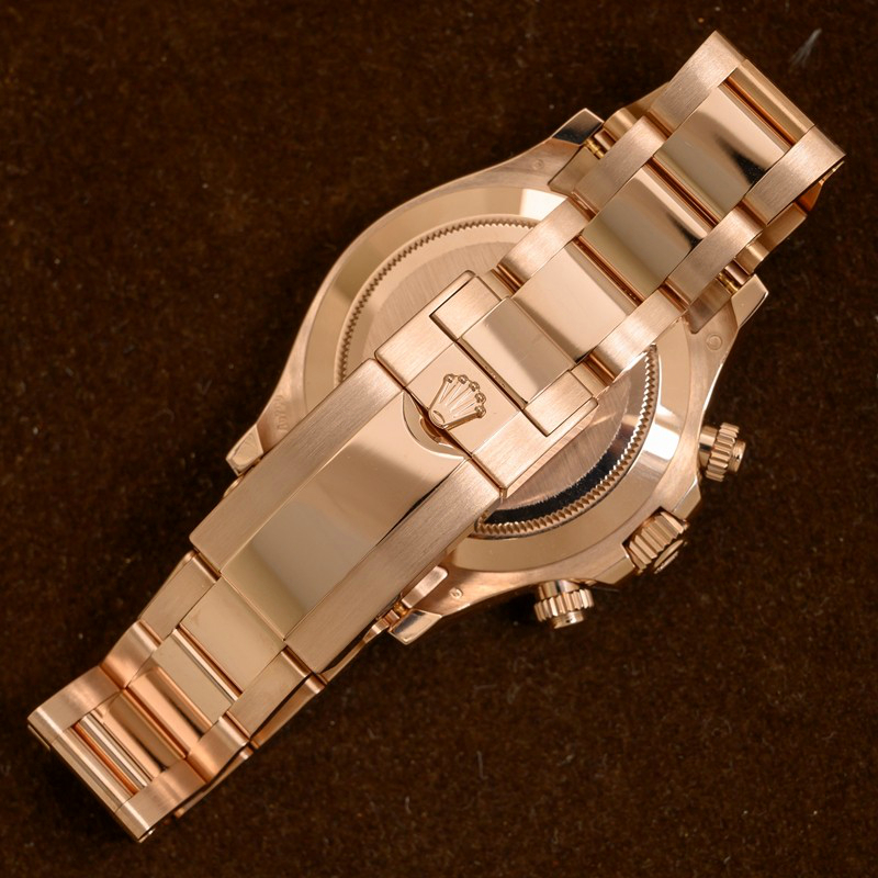 Daytona Swiss replica watches looks and function identical to a genuine Rolex. Our Swiss cloned Rolex chronograph movements feature every Rolex engraving, serial numbering and are lubed with Nano-oil Swiss lubricants and are designed to last a lifetime. Visually and functionally our chronograph movement 28.000 vibrations per hour offers the same fine sweep seconds hand “Rolex” motion as on the genuine Rolex. Our chronograph sub dials displays the seconds, minutes, hours and both screws down buttons are fully functional for the chronograph start-pause-stop functions.