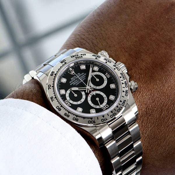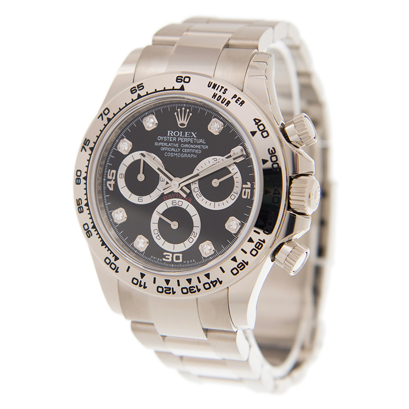 Rolex Men's Cosmograph Daytona White Gold 116509 Black Diamond