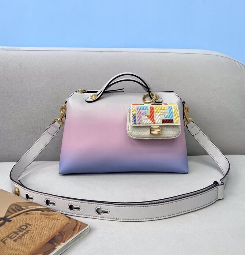 Medium Iconic By The Way Boston bag, made of leather in graduated tones of grey, pink and lilac, with zip fastening.