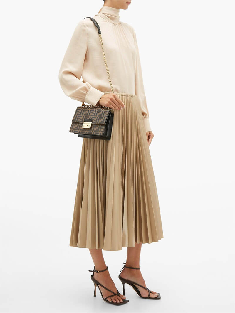 Fendi is the temple of Roman fashion. Craftsmanship, exclusivity, research, and innovation are mixed with the deep bond with Rome and the undisputed symbol of Made in Italy luxury. The new collection is a true hymn to femininity in its most daring and sensual codes that do not lose their refined charm. The Kan U Fendi bag was born from the development and street evolution of the brand's classic stylistic codes such as the double “F” logo designed by Karl Lagerfeld.