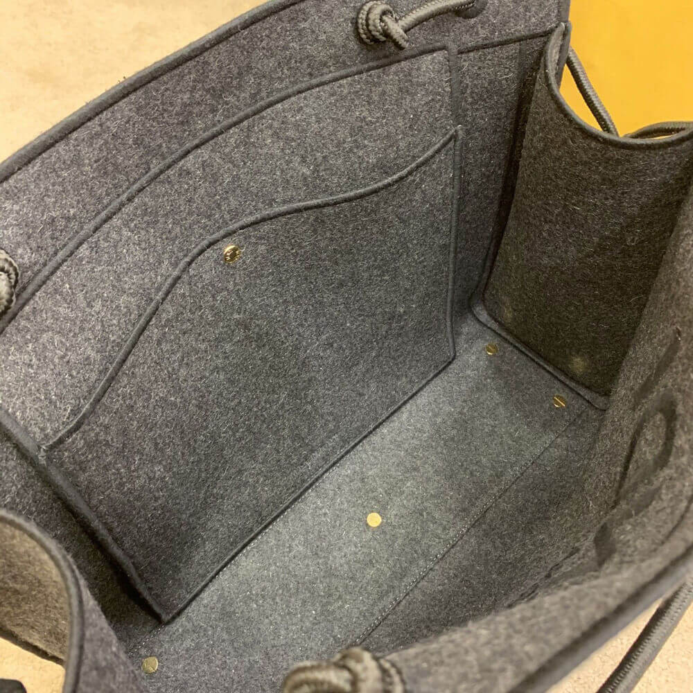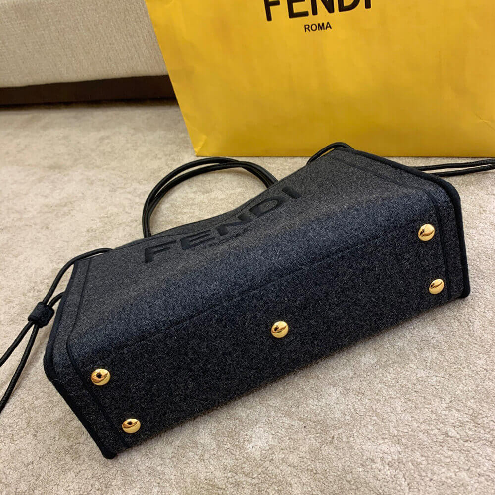 Fendi reworks the clean-cut Roma Shopper silhouette in unexpected fabrics for Pre-AW20, and this charcoal-grey version is crafted from felted flannel with a two-tone mélange look. Made in Italy, it has drawcord accents at the ends and is embroidered along the edges and in a bold logo across the front. Carry it by the twin handles in the crook of your arm.