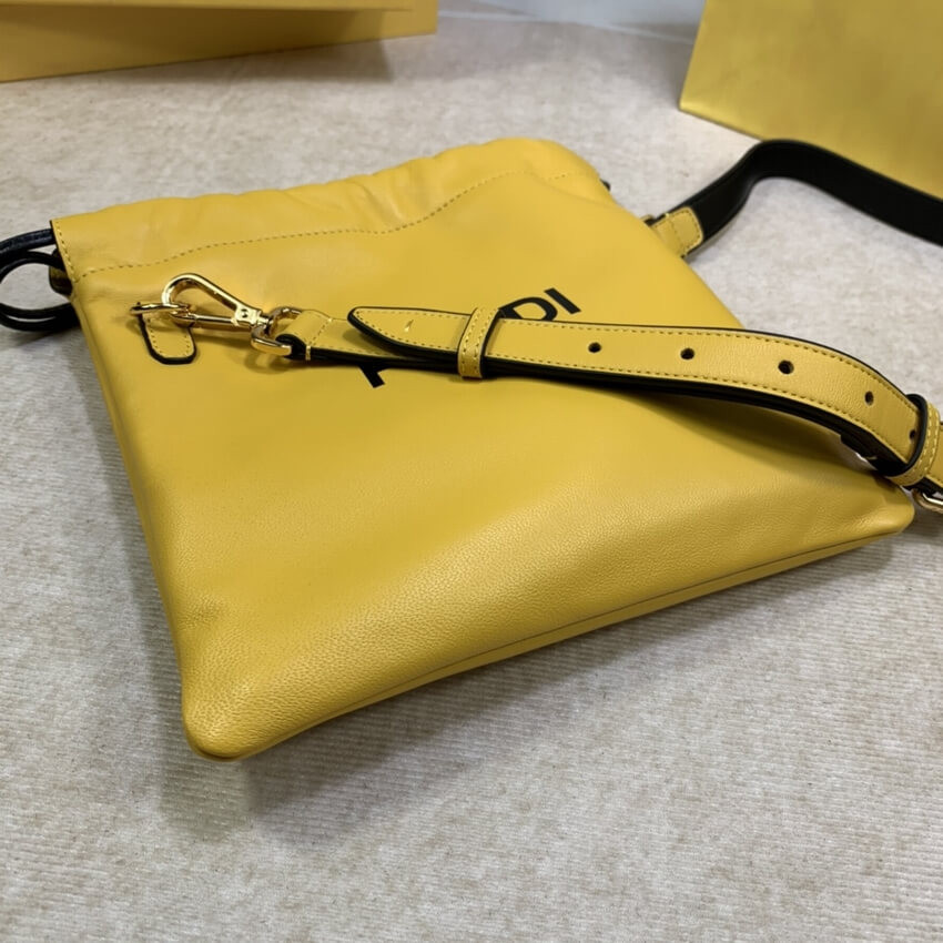 Small pouch bag with drawstring made of pink nappa leather with black “FENDI ROMA”. Featuring a roomy lined interior and gold-finish metalware. It can be carried by hand or worn either on the shoulder or cross-body thanks to the comfortable, adjustable and detachable shoulder strap.
