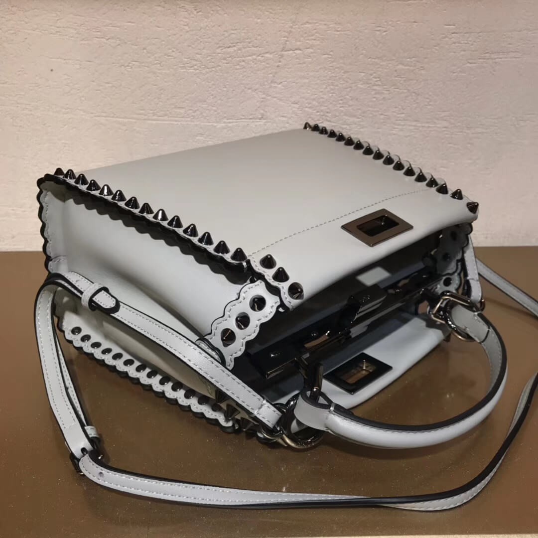 - The scalloped edges are decorated with metal-plated micro studs
